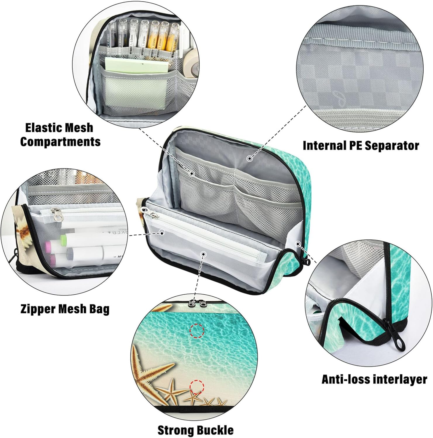 Funzione stand up convertibile: con un intelligente sistema pieghevole e a scatto, la custodia con cerniera per il trucco si trova in posizione verticale sulla scrivania, consentendo di organizzare e accedere ai tuoi oggetti senza problemi Struttura in tessuto resistente: realizzata in nylon resistente, resistente ai graffi, respinge lo sporco e mantiene il suo aspetto elegante attraverso l'uso quotidiano e la manipolazione frequente Spaziose ma compatte: le borse per penne con cerniera per organizzare offrono ampio spazio all'interno con scomparti che aiutano a classificare gli oggetti essenziali quotidiani mantenendo una forma elegante e portatile Non solo per articoli di cancelleria: gli astucci kawaii per ragazze sono pronti per contenere materiale scolastico, oggetti essenziali da viaggio o prodotti di bellezza, adattandosi perfettamente a ogni stile di vita Ideale come regalo: sia per un giovane studente, un artista o un amico in viaggio, i sacchetti con cerniera possono essere personalizzati con testo o immagini per creare un ricordo memorabile