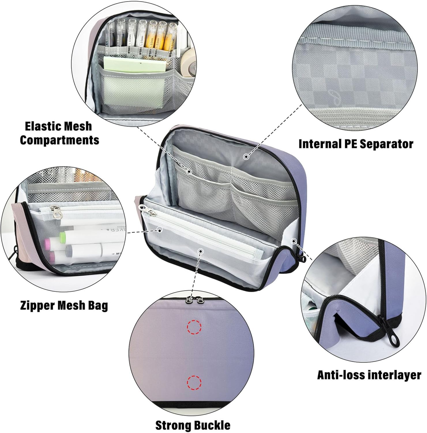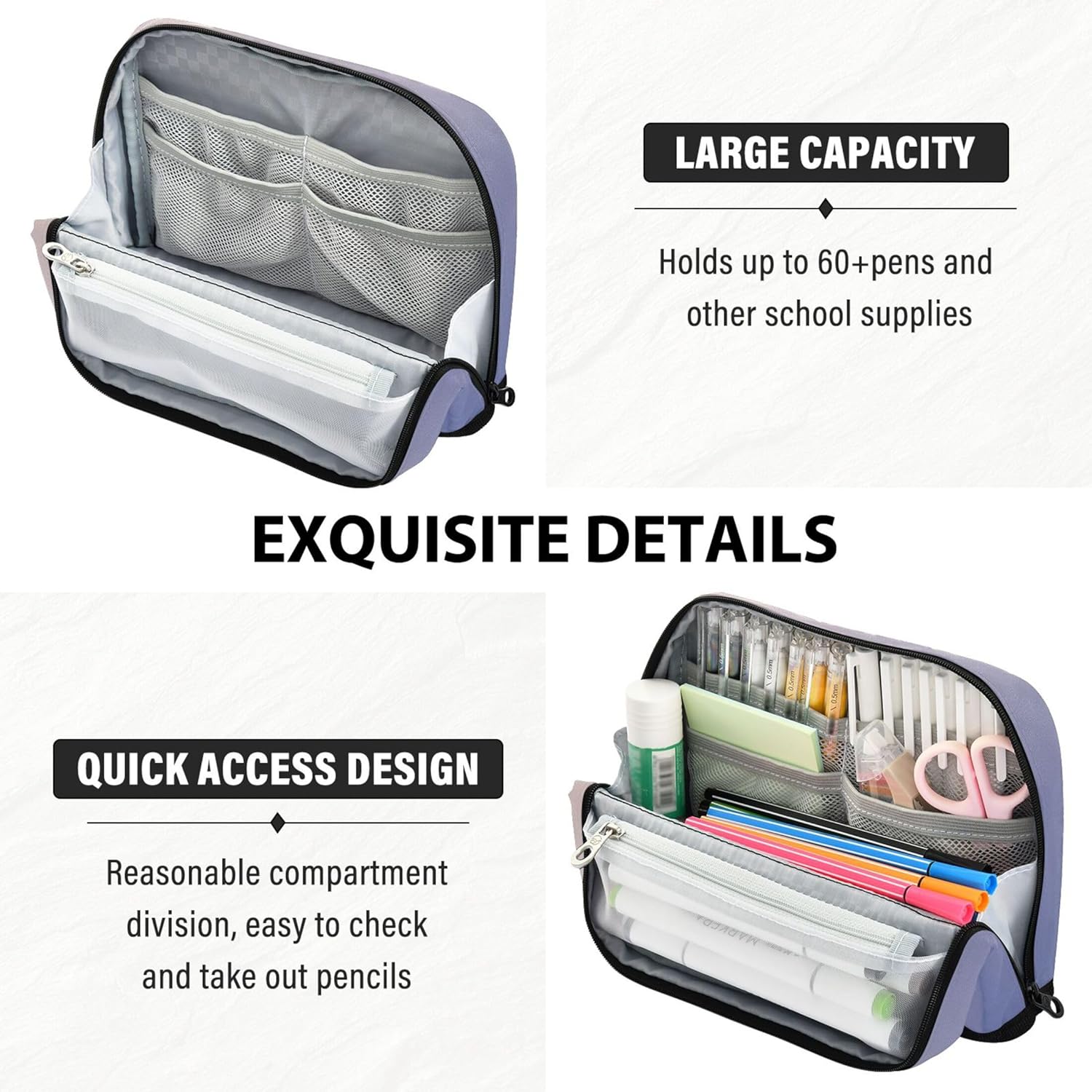 Soluzione intelligente per organizzare la scrivania: non c'è bisogno di scavare in giro: gli astucci scolastici per ragazze si alzano saldamente quando sono piegati, visualizzando chiaramente il contenuto per un'organizzazione più rapida e più facile Qualità che puoi sentire: il nylon resistente offre alle custodie per adulti una struttura leggera ma resistente, mantenendo il contenuto al sicuro rendendo la pulizia semplice e senza problemi Layout intelligente per riporre: tieni le tue forniture in ordine: il grazioso astuccio con cerniera include uno scomparto principale, una tasca in rete con cerniera e uno slot aperto per separare e accedere agli oggetti con facilità Un sacchetto, molti scopi: i sacchetti per penne scolastici si spostano facilmente tra una custodia per la scuola, un astuccio per il trucco o un porta attrezzi da viaggio, ideali per studenti, professionisti e creativi Progetta a modo tuo: l'astuccio impermeabile per matite supporta modifiche personalizzate come testo personalizzato o opere d'arte caricate, rendendolo un'idea regalo eccezionale per bambini e adulti creativi