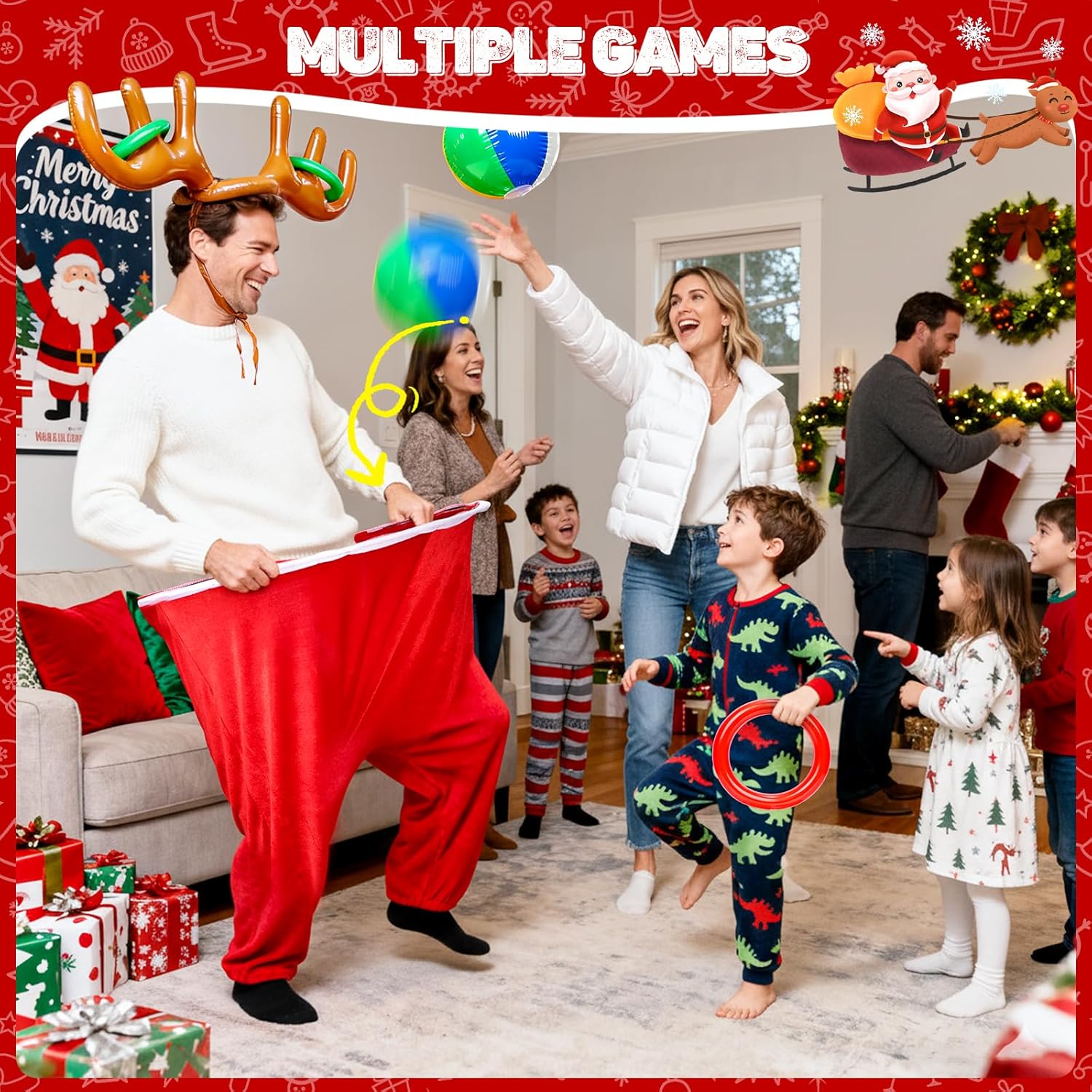 Ultimate Christmas Party Games: Questo set di gioco Granny Pants Toss sarà un grande successo alla tua festa di Natale! Scivola nel gigante, dal design esilarante "Granny Pants", lancia la palla e preparati per un'atmosfera tumultuosa che aumenterà l'energia e creerà un sacco di risate e grandi ricordi. È perfetto per feste di vacanza, eventi scolastici e giochi al chiuso o all'aperto Un successo con bambini e adulti: divertimento per tutte le età, questo set porta divertimento senza sosta, risate e competizione amichevole. I pantaloni giganti sono progettati per adattarsi comodamente a tutti, rendendolo un successo per qualsiasi festa di festa. Grandi giochi di festa a tema autunnale, giochi di festa del ringraziamento, giochi di festa di Halloween, giochi di festa di Natale e altro ancora Infinite possibilità di gioco: Diventa creativo con diversi modi di giocare, dalle staffette a squadre e percorsi ad ostacoli alle esilaranti competizioni di cattura. Le regole sono completamente personalizzabili, quindi puoi mescolarle per ogni festa, garantendo un intrattenimento unico per tutti i tuoi incontri Gioco di lancio dell'anello con corna di renna: le corna gonfiabili di renna misurano circa 88,9 cm e dispongono di cinghie regolabili per adattarsi a qualsiasi dimensione della testa. Che tu abbia bisogno di intrattenimento per adulti, bambini o tutta la famiglia, questo gioco è la scelta vivace perfetta per la tua festa di Natale Set di giochi per feste di Natale: questo set di giochi di Natale include 1 x pantaloni giganti, 6 x palline gonfiabili, 1 x corna di renna gonfiabili, 6 x anelli gonfiabili (3 x rossi, 3 x verdi), 1 x maschera per gli occhi di Natale, 12 x medaglie, 1 × pompa a mano. Ottimi giochi di Natale per feste in famiglia