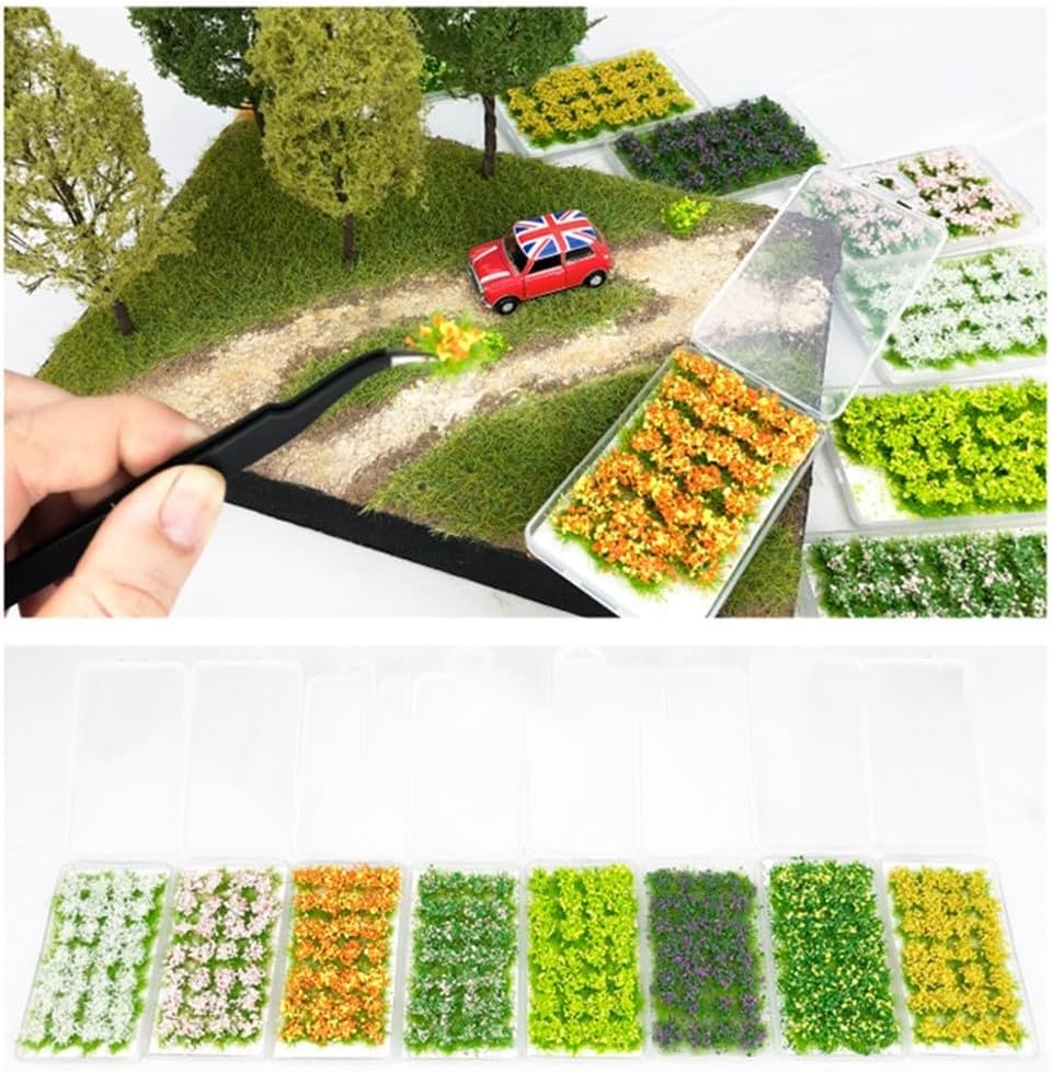 Design misto con fiori selvatici: aggiungi un tocco di bellezza naturale al tuo paesaggio in miniatura o ai lavori fai da te con queste erbe autostatiche. Caratterizzati da un vivace mix di fiori selvatici, portano un elemento colorato e vivace alle tue scene di modello. Aspetto realistico: con un'altezza di circa 10-11 mm, questi grappoli di erba di fiori assomigliano a vere erbe e fiori, creando uno scenario realistico e realistico per i tuoi modelli. Il loro design dettagliato aggiunge profondità e autenticità al tuo mondo in miniatura. Utilizzo: sia che tu stia costruendo un tavolo di sabbia, scacchi di guerra, modelli di personaggi o modelli di treni, questi grappoli di fiori ed erba sono adatti a vari tipi di modelli e scale. Sono particolarmente compatibili con i modelli in scala 1:35, 1:48, 1:72 e 1:87, fornendo un eccezionale effetto abbellimento. Facile applicazione: queste erbe autostatiche sono comode da usare. Staccare la carta posteriore e applicarla sul lato desiderato. Non è necessaria alcuna colla aggiuntiva, rendendo il processo di applicazione senza problemi. Quantità abbondante: ogni confezione contiene 28 pezzi di erba modella, fornendo ampio spazio per i tuoi progetti. La grande scala della confezione, misura 110 mm di lunghezza e 65 mm di larghezza, assicura di avere materiali sufficienti per creare una scena lussureggiante e vibrante.