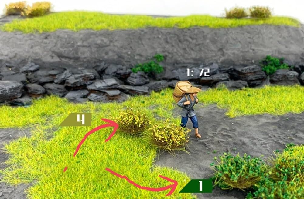 Aspetto realistico: l'erba statica autoadesiva presenta un design a grappolo di erbe aggiornato, fornendo un aspetto più realistico e realistico. La saturazione dell'erba assomiglia molto a quella della scena naturale, migliorando l'effetto visivo generale dei tuoi diorami, scacchi di guerra, modelli, soldati, modelli di treni e altro ancora. Utilizzo: questi grappoli di erba verde sono adatti per una vasta gamma di applicazioni. Possono essere utilizzati come scenario per la costruzione di tavoli di sabbia, set di scacchi di guerra, modelli e modelli di treni. Il design assicura che possano essere incorporati senza soluzione di continuità in varie scale, come 1:35, 1:48, 1:72 e 1: Quantità abbondante: ogni scatola contiene 28 piante di grappoli d'erba, misura 110 mm di lunghezza x 65 mm di larghezza. I grappoli di erba stessi sono larghi circa 13-15 mm e alti 9-10 mm. Con questa ampia quantità, puoi facilmente creare scene lussureggianti e vivaci con fogliame abbondante. Facile da usare: la caratteristica autoadesiva di queste erbe elimina la necessità di colla disordinata o strumenti aggiuntivi. Staccare il supporto e applicare direttamente sulla base desiderata. La comoda applicazione semplifica l'aggiunta di vegetazione realistica ai tuoi modelli o diorami. Dettagli migliorati: l'erba verde fornisce dettagli eccezionali ai tuoi progetti. Che tu stia lavorando su paesaggi in miniatura, giochi da tavolo o esposizioni artistiche, questi miglioreranno notevolmente l'attrattiva visiva delle tue creazioni, portandole alla vita con una vegetazione vibrante e realistica.