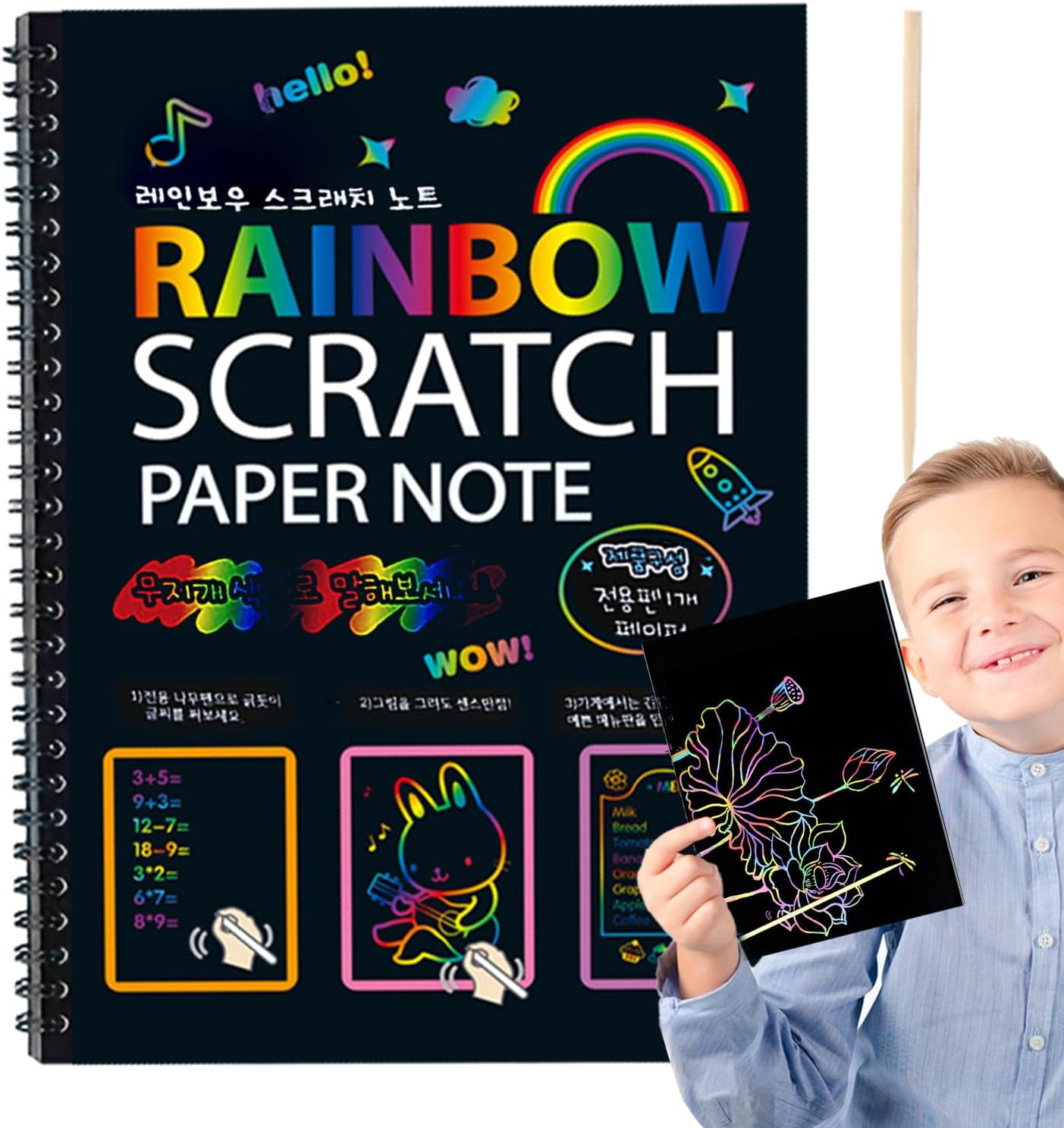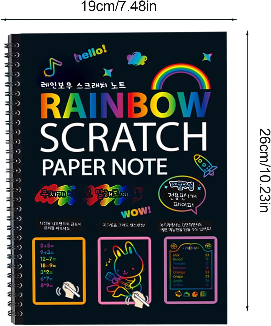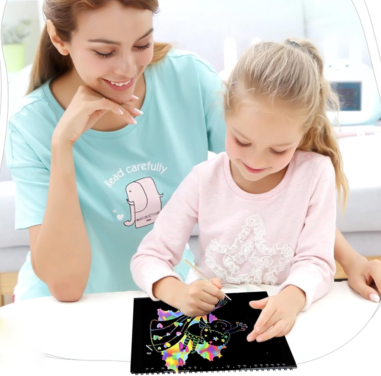 Arte creativa divertente: incoraggia i bambini a sviluppare la loro creatività con Scratch Books for Kids. Le superfici nere sono facili da graffiare con la penna inclusa, rivelando colori vivaci e più possibilità. Lascia che i tuoi figli si esprimano e creano arte unica. Usura e usura del supporto: realizzati in cartone bianco spesso e resistente e uno strato raschiabile a base di acqua e inodore, i nostri raschietti offrono superfici lisce per opere d'arte dettagliate. Con colori vivaci e accattivanti, potrete godere di un'esperienza artistica duratura e senza lacrime. Learning migliorato: sviluppa la creatività e l'immaginazione di tuo figlio migliorando le sue capacità educative con Scratch Books for Kids. Questo giocattolo educativo è perfetto per i bambini dai 3 anni in su e li aiuta a migliorare le loro abilità motorie, la coordinazione -mano e il riconoscimento dei colori. Lascia che il tuo bambino si diverta mentre impara. Molteplici funzioni: i libri da grattare per bambini incoraggiano l'immaginazione e la creatività in ogni momento. Utilizzali per registrare idee, prendere appunti, fare carte, studiare, dipingere e altro ancora. Appendili al muro o usali come giocattolo o graffiti per esprimerti. Adatto per regalare: Scratch Books for Kids è il regalo creativo ideale per bambini e genitori. Con un design interattivo, incoraggia i bambini a mostrare la loro immaginazione e talento naturale divertendosi. Perfetto per compleanni, giorni del bambino e festività, può aiutare a coltivare e migliorare i propri sentimenti artistici.