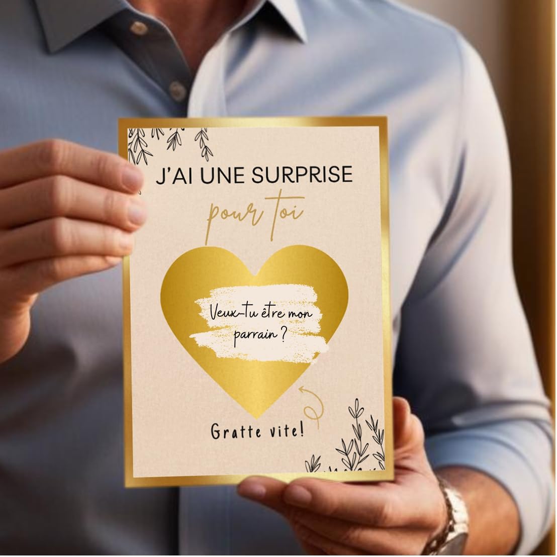 【Commovente annuncio di gravidanza】 Scopri l'emozione di un annuncio di gravidanza stimolante con il nostro gratta e vinci. È un’idea regalo unica per sorprendere e commuovere nonni, papà, zia e zio, madrina, padrino o qualsiasi altro membro della famiglia. 【Fai una richiesta speciale】 Vuoi essere la mia madrina? Vuoi essere il mio padrino? Rendi speciale la richiesta per l'annuncio della madrina, del padrino, del testimone o della damigella d'onore con il nostro grazioso gratta e vinci. È perfetto per chi cerca un regalo personalizzato che renda ogni annuncio unico e su misura per i tuoi sentimenti. 【Regalo originale e personalizzato per donne e uomini】Fai un regalo in modo sorprendente alla persona amata, che sia uomo o donna. Il nostro biglietto è l'idea regalo ideale per tutte le occasioni come: compleanno di mamma o papà, Natale, matrimonio o pensionamento. Un regalo per innamorati, coppie, fidanzati, fidanzate. Un regalo per il nonno, la nonna, una sorella o un amico. È perfetto per San Valentino, la festa della mamma e del papà, la partenza di un collega o il 18° compleanno. Porta un tocco di umorismo e sorpresa, perfetto per tutte le occasioni della vita. 【Alta qualità】 Il gratta e vinci è spesso e molto resistente. Il cuore da grattare permette di svelare il messaggio a sorpresa in modo divertente e sorprendente. Il retro della carta è vuoto e pronto per essere riempito con i tuoi desideri e desideri. È progettato con materiali nobili di alta qualità. La stampa è su carta opaca spessa 350 g con finitura oro lucido. Viene fornito con una morbidissima busta effetto velluto e un sigillo in ceralacca che aggiunge un tocco di eleganza. 【 Miglior servizio 】 Poiché abbiamo fiducia al 100% nella nostra qualità, se non sei soddisfatto del tuo acquisto, per qualsiasi motivo, contattaci! Ci impegniamo a darti completa soddisfazione fornendoti il miglior servizio possibile.