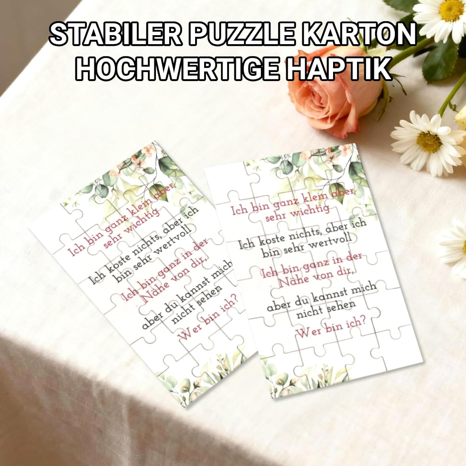 Stile puzzle creativo per la scoperta emotiva: questo prodotto annuncia la gravidanza presenta uno stile unico di puzzle: i ricevitori mettono insieme i pezzi passo dopo passo per rivelare il messaggio di gravidanza, creando eccitazione e gioia indimenticabile. Qualità di stampa HD per una visualizzazione chiara: il set di annunci di gravidanza utilizza una stampa HD di alta qualità che riproduce testo e motivi nitidi e colori intensi, rimanendo chiaramente riconoscibili per una presentazione premium. Facile e stabile: i pezzi del puzzle del prodotto che annunciano la gravidanza sono tagliati con precisione e facili da collegare senza staccarsi facilmente. Anche un uso sostenibile come ricordo è possibile grazie alla carta resistente. Personalizzabile per messaggi personalizzati: questo set per annunciare la gravidanza può essere ampliato con testi personalizzati – aggiungi "Stiamo aspettando il bambino [nome]!" o aggiungere una data speciale per renderlo un vero regalo personalizzato. Versatile per diversi scenari: il puzzle annuncia la gravidanza è perfetto per serate in famiglia, compleanni dei nonni, feste di Natale o incontri spontanei con gli amici, rendendo ogni sorpresa indimenticabile.
