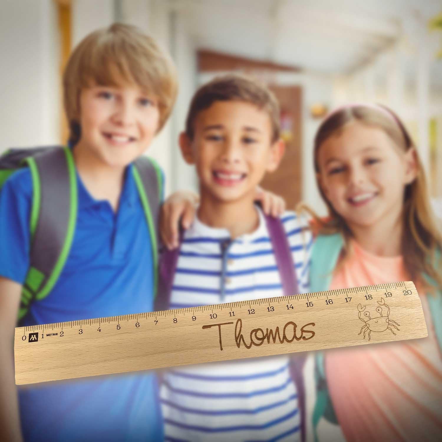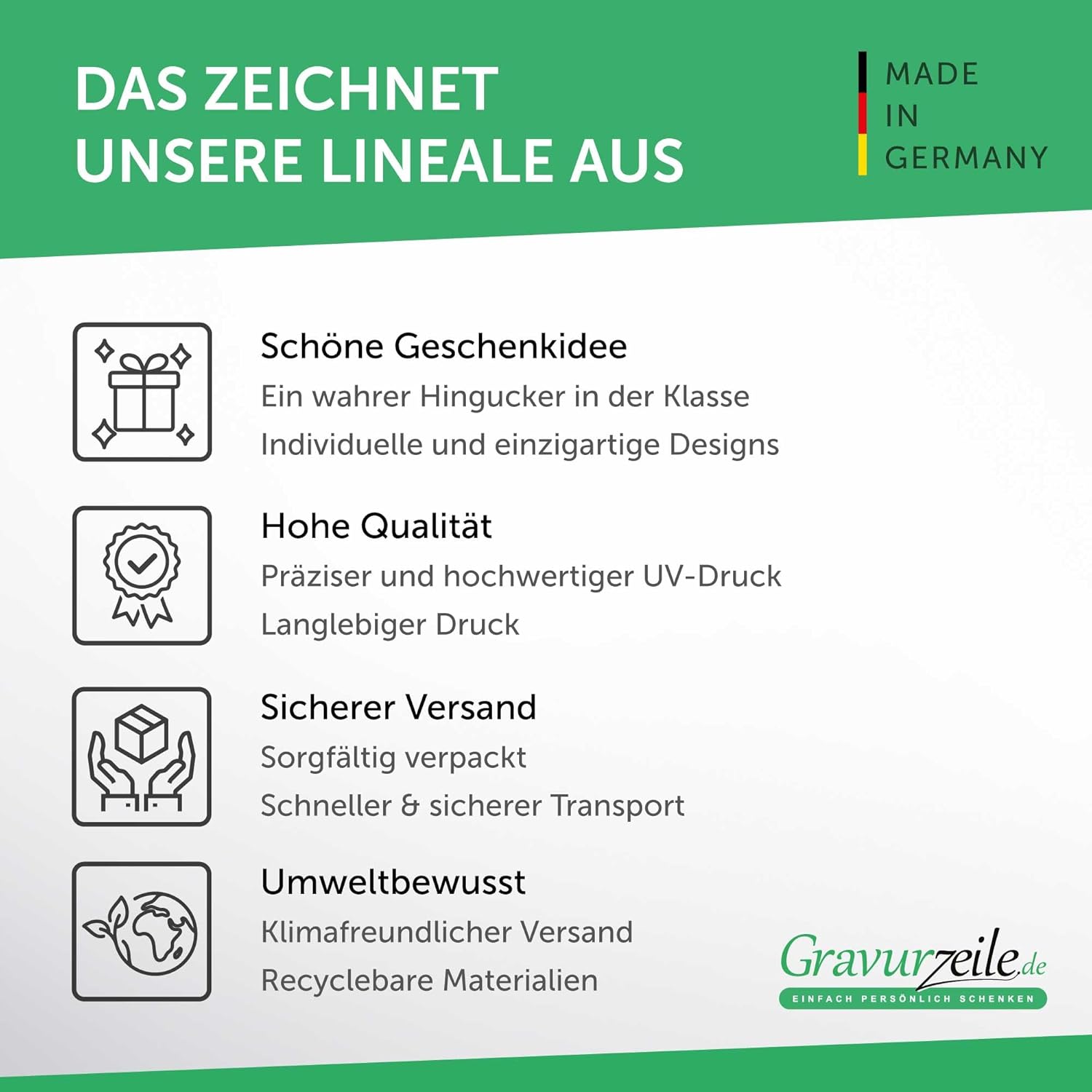 LINEAL PER L'INIZIO A SCUOLA - Righello in legno personalizzabile con nome e un simpatico motivo. Un regalo unico per ragazzi e ragazze per l'inizio della scuola! ✅ Incisione duratura: l'incisione viene incisa sul legno mediante tecnica laser e non si lava nemmeno dopo numerosi lavaggi. Qualunque sia il motivo che sceglierete: voi e i vostri cari vi godrete a lungo Dimensioni: il righello misura circa 210 x 3 x 30 mm. La lunghezza che si può misurare con questo righello è di 20 cm. Prodotto in Germania: i nostri articoli sono prodotti nel cuore della regione della Ruhr. I disegni vengono creati digitalmente e poi stampati a mano con stampa UV sul righello. Nessuna produzione di massa, nessuna importazione. La merce va direttamente da noi a voi! Servizio di qualità: ordinate oggi stesso e convincetevi della qualità di prima classe e della spedizione rapida. Se avete ancora domande sui nostri prodotti o una consegna non corrisponde alle vostre esigenze, siamo a vostra disposizione sia telefonicamente che via e-mail con consigli e fatti