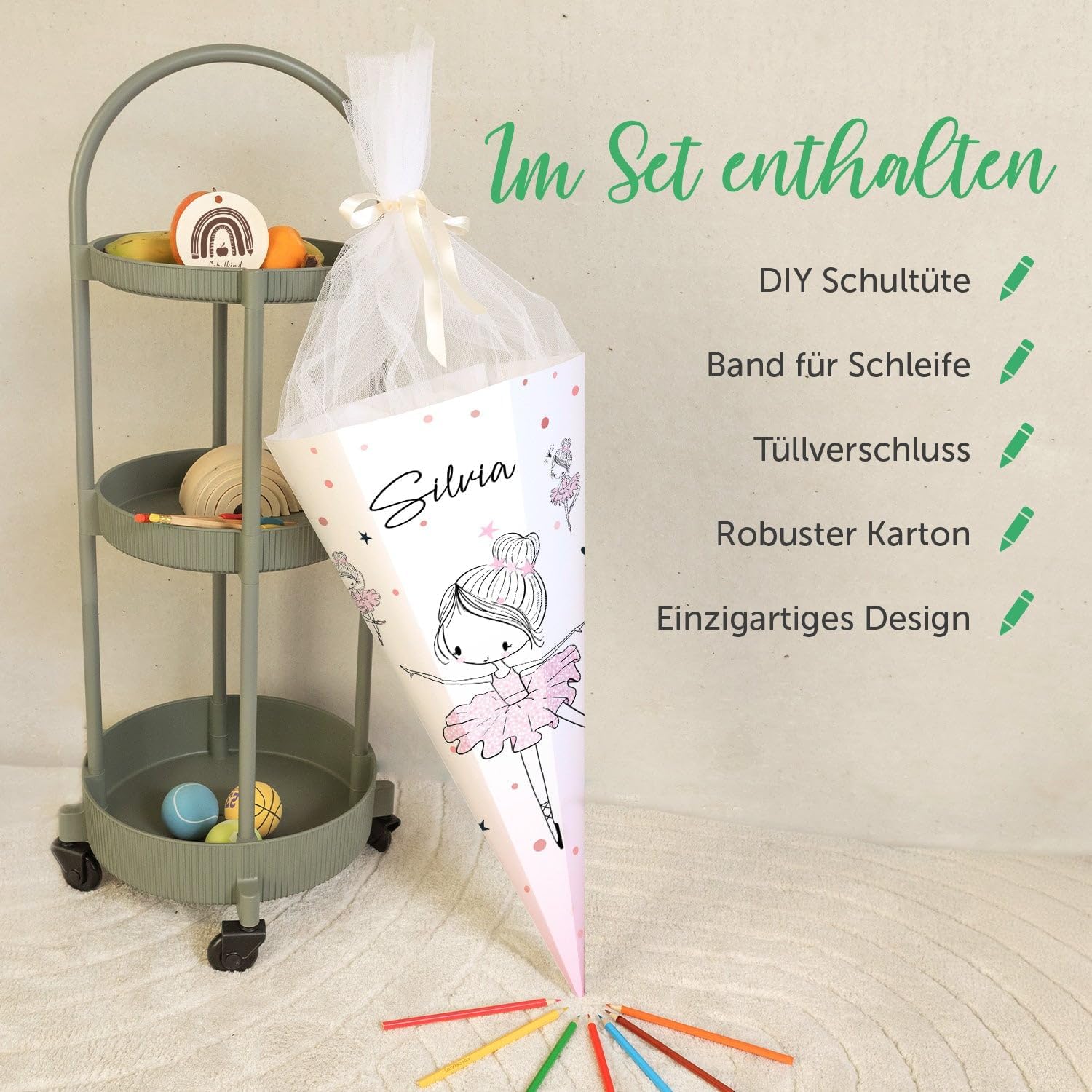 Stampa dai colori vivaci: l'inizio della scuola si avvicina sempre più e i nostri sacchetti personalizzati portano colore e fantasia nel primo giorno di scuola! Che si tratti di dinosauri, unicorni o colori neutri: nella nostra selezione di motivi c'è qualcosa per ogni principiante della scuola Personalizzato con il nome: ogni cono viene stampato individualmente e con il nome desiderato, creando così un ricordo unico e personale per l'inizio della scuola Pratico e adatto ai bambini: il cono per la scuola è robusto, piacevolmente leggero e grazie alla sua forma esagonale particolarmente facile da impugnare. La chiusura in tulle abbinata conferisce un aspetto festoso e mantiene il contenuto in modo sicuro Dimensioni: con una dimensione di circa 61 × 28 cm e una capacità di circa 2,8 litri, il sacchetto offre spazio sufficiente per piccoli regali o accessori scolastici. Realizzato in robusto cartone da 400 g/m², il sacchetto è robusto, ma allo stesso tempo piacevolmente leggero Servizio di qualità: ordinate oggi stesso e convincetevi della qualità di prima classe e della spedizione rapida. Se avete ancora domande sui nostri prodotti o una consegna non corrisponde alle vostre esigenze, siamo a vostra disposizione sia telefonicamente che via e-mail con consigli e fatti