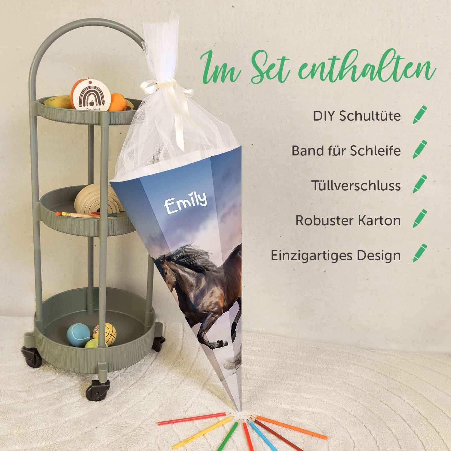Stampa dai colori vivaci: l'inizio della scuola si avvicina sempre più e i nostri sacchetti personalizzati portano colore e fantasia nel primo giorno di scuola! Che si tratti di dinosauri, unicorni o colori neutri: nella nostra selezione di motivi c'è qualcosa per ogni principiante della scuola Personalizzato con il nome: ogni cono viene stampato individualmente e con il nome desiderato, creando così un ricordo unico e personale per l'inizio della scuola Pratico e adatto ai bambini: il cono per la scuola è robusto, piacevolmente leggero e grazie alla sua forma esagonale particolarmente facile da impugnare. La chiusura in tulle abbinata conferisce un aspetto festoso e mantiene il contenuto in modo sicuro Dimensioni: con una dimensione di circa 61 × 28 cm e una capacità di circa 2,8 litri, il sacchetto offre spazio sufficiente per piccoli regali o accessori scolastici. Realizzato in robusto cartone da 400 g/m², il sacchetto è robusto, ma allo stesso tempo piacevolmente leggero Servizio di qualità: ordinate oggi stesso e convincetevi della qualità di prima classe e della spedizione rapida. Se avete ancora domande sui nostri prodotti o una consegna non corrisponde alle vostre esigenze, siamo a vostra disposizione sia telefonicamente che via e-mail con consigli e fatti
