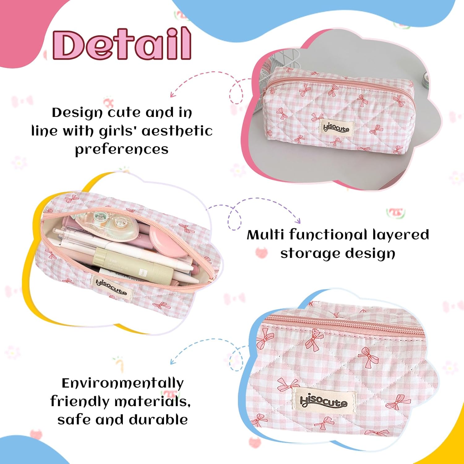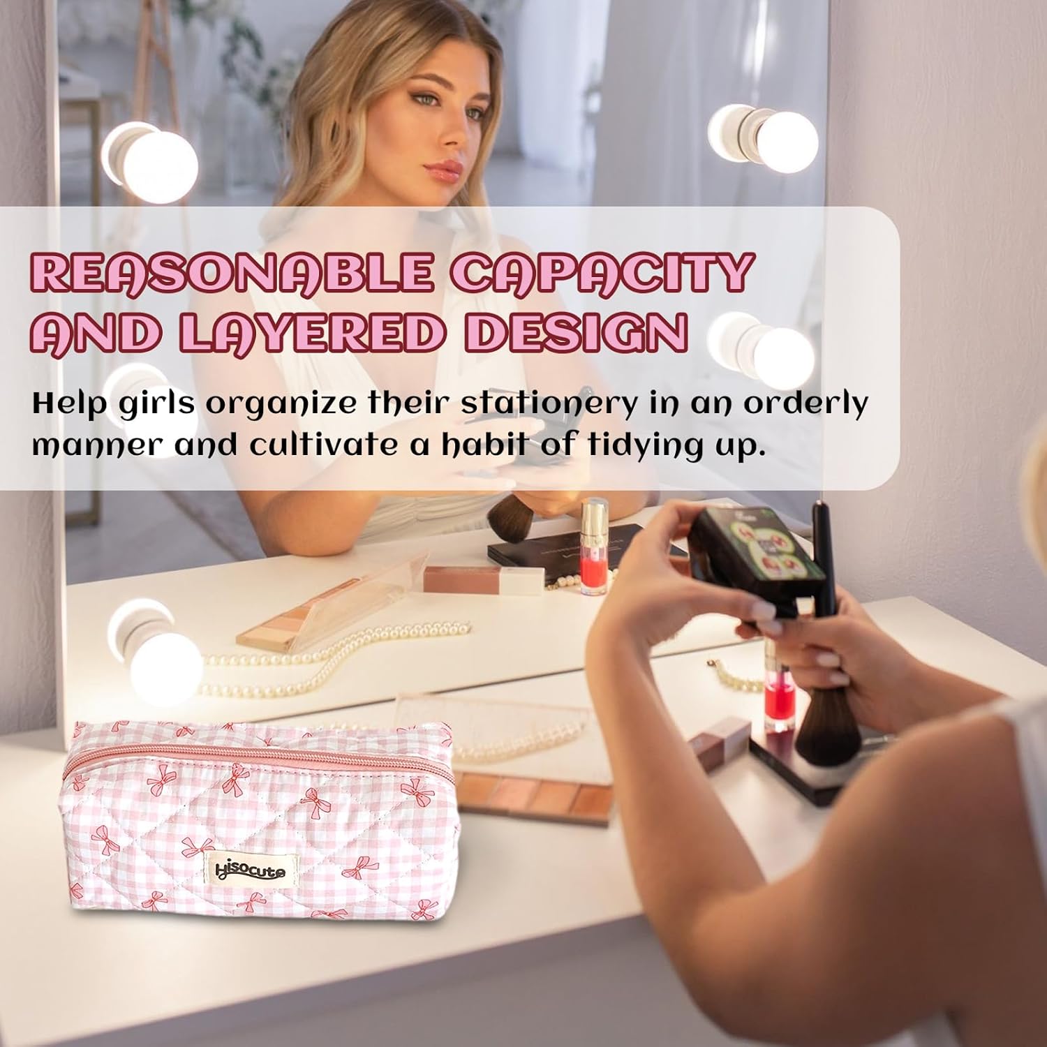 Progettato per le ragazze: astuccio da ragazza con un design carino e aesthetic, perfetto per le ragazze delle elementari e del college, ispirato alle tendenze kawaii e clean girl, ideale per esprimere il loro stile unico Grande capacità Design: astuccio da ragazza spaziosa pratica per organizzare matite, trucco e altri accessori, perfetto per la scuola o i viaggi, offrendo una soluzione di archiviazione pratica ed estetica Materiali morbidi: realizzato in velluto a coste e trapuntato, questo astuccio scolastico è durevole, sicuro ed ecologico, soddisfa le aspettative dei genitori attenti all'ambiente e alla sicurezza dei loro bambini Leggero e portatile: astuccio per ragazze leggero e portatile, adatto a vari scenari, facile da scivolare in uno zaino, ideale per ragazze in cp o adolescenti, perfetto per la scuola, i viaggi o le attività quotidiane Regali raffinati: astuccio da ragazza personalizzabile con fiocchi o paillettes, trasformando questo astuccio aesthetic in un regalo unico ed emotivo per le ragazze che amano i disegni pastello