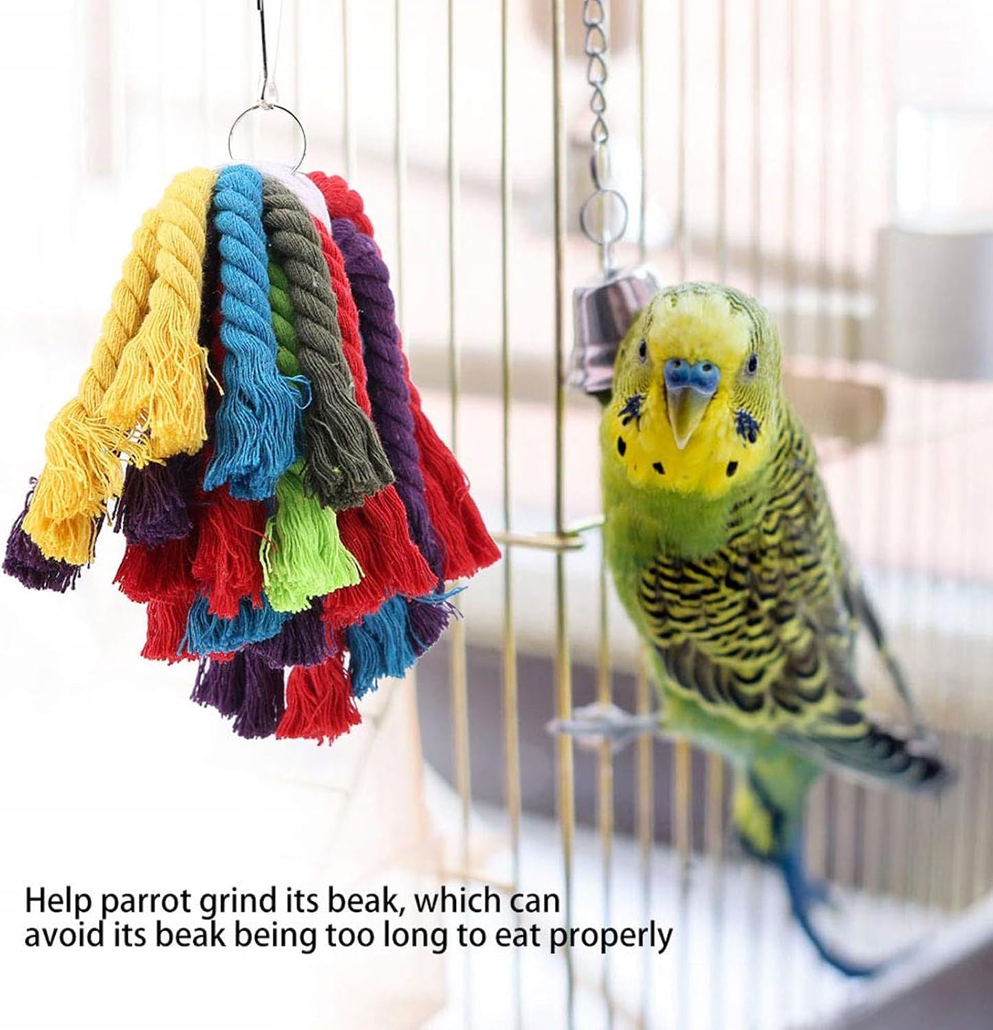 Il nostro giocattolo in corda per pappagalli presenta un design colorato che cattura l'attenzione del tuo uccello, rendendolo un'ottima aggiunta a qualsiasi collezione di accessori per gabbie per pappagalli. Utilizza una corda di cotone selezionata, questo giocattolo da appendere alla gabbia è sicuro per i pappagalli da masticare e giocare, aiutando a mantenere la salute del becco dalla crescita eccessiva. Ideale per gli appassionati di uccelli e proprietari di animali domestici che vogliono fornire al loro uccello piumato un'attività coinvolgente e stimolante. Per l'uso in gabbie per uccelli, cortili o spazi interni, questo giocattolo per gabbia offre intrattenimento quotidiano, opportunità di allenamento e riduzione dello stress per pappagalli e altri piccoli animali domestici. e rimuovere, questo giocattolo da masticare per pappagalli è progettato per migliorare l'ambiente del tuo animale domestico promuovendo comportamenti naturali.