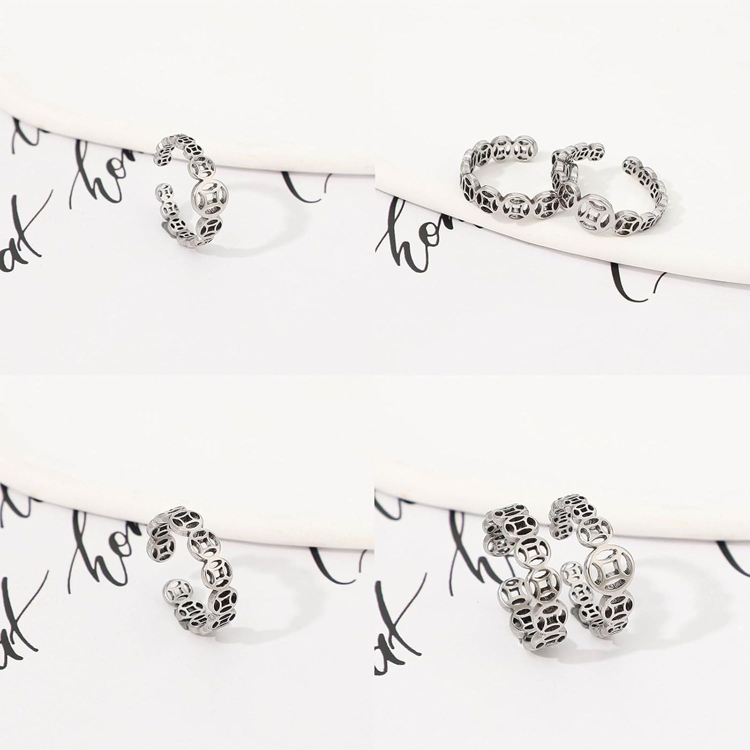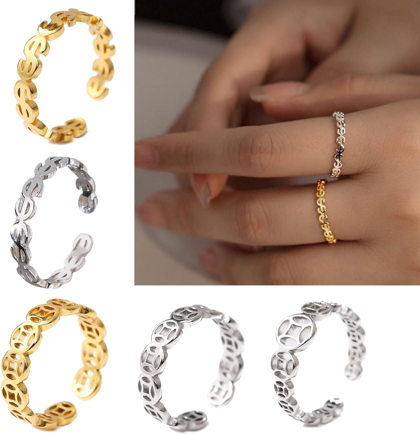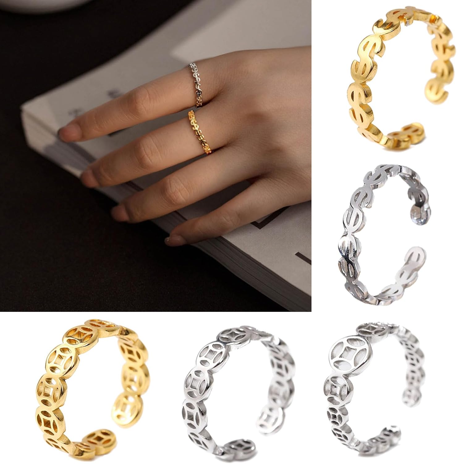 e Acciaio, questo presenta un design unico retrò cavo che trasuda fascino artistico ed eleganza vintage. Realizzata con meticolosa fattura, la nostra moneta vintage presenta un motivo a moneta da dollaro, che simboleggia il buono, il suo squisito design cavo aggiunge un tocco di raffinatezza al dito, rendendolo più lungo ed elegante. Progettata sia per uomini che per donne alla moda che apprezzano il fascino del vintage, la nostra moneta vintage è per coloro che cercano fortuna e successo finanziario. Sia che ti stia vestendo per una giornata informale o partecipando a un incontro sociale, la nostra moneta vintage è un accessorio versatile che completa vari stili di abbigliamento. Mostra il tuo gusto alla moda senza sforzo.