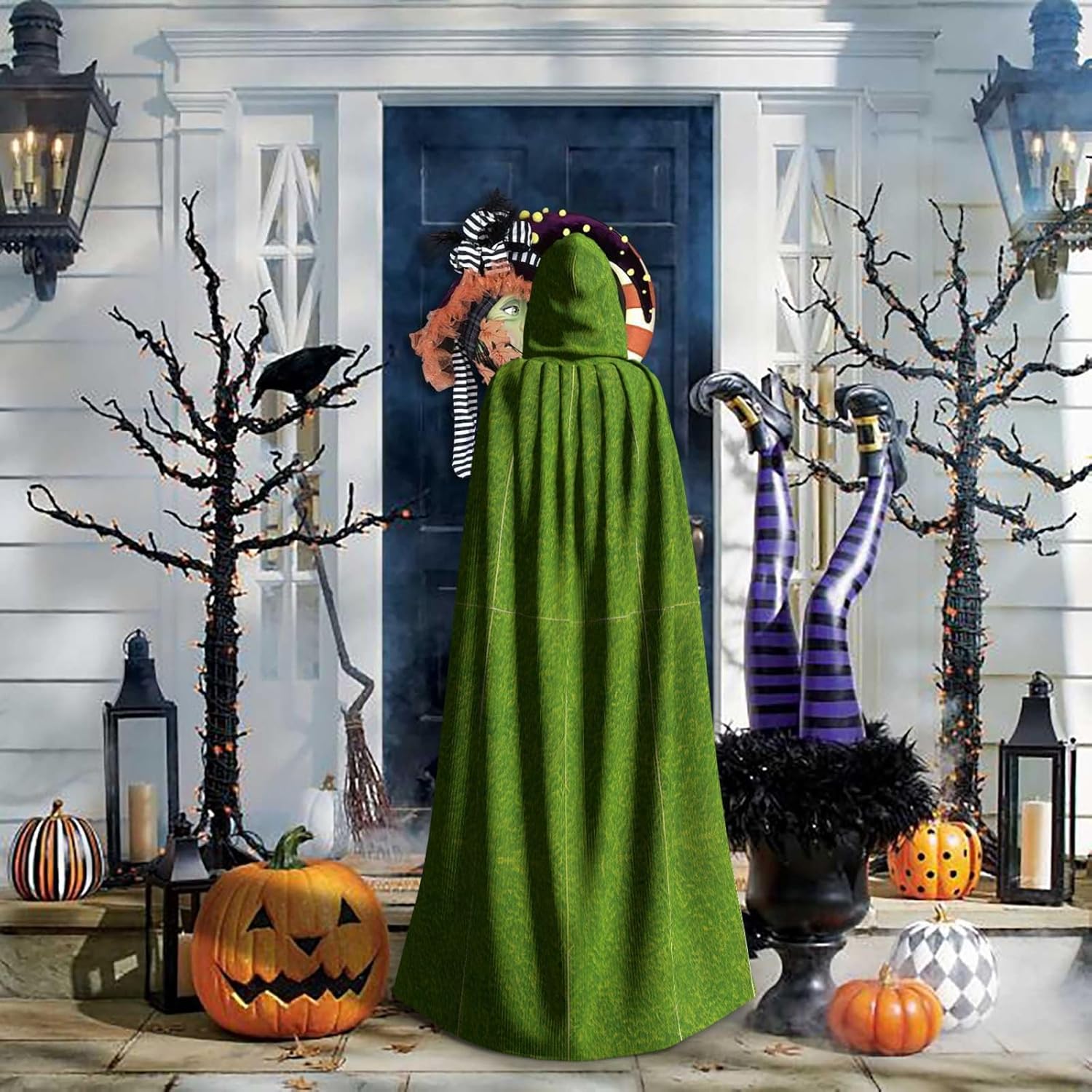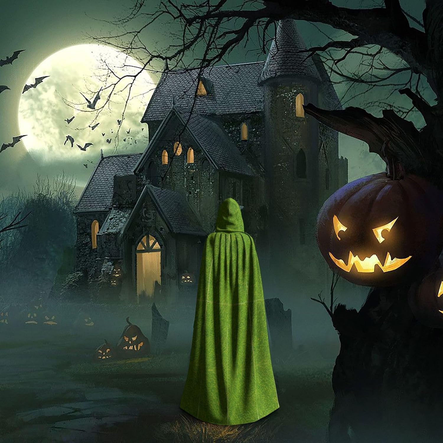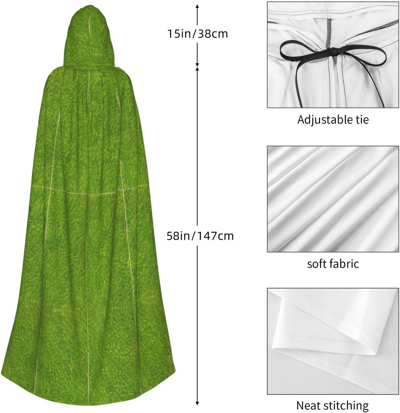 Stampa di larghezza del mantello con cappuccio verde prateria \r Descrizione del materiale: 100% fibra di poliestere (poliestere). \r Prestazioni del prodotto: il mantello con cappuccio oversize è realizzato in tessuto lungo, resistente e non pruriginoso, senza cravatta, senza cerniera, comodo mantello con cappuccio e tessuto lungo, resistente e non prurito) \r Scenari applicabili adatti per Halloween, costumi cosplay, costumi da palco, feste in maschera, feste a tema, balli, convegni di fumetti, ecc. Può essere utilizzato per feste, carnevale, Halloween, feste in costume, ecc. \r Istruzioni di lavaggio: lavabile in lavatrice a mano, facile da pulire e durevole