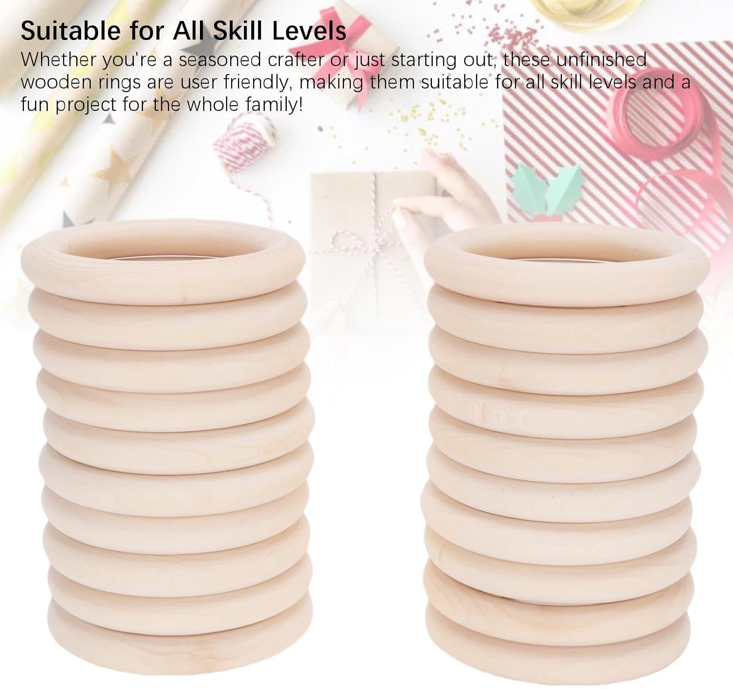 [Familienfreundlich] Che tu sia un artigiano esperto o un principiante, questi anelli in legno sono facili da usare e adatti a tutti i livelli di abilità. [Arte Creativa] Con un totale di 20 anelli di legno della dimensione di 7 cm puoi progettare le tue creazioni artigianali in legno e dare libero sfogo alla tua fantasia. [Kreatività Pura] Gli anelli in legno naturale offrono una tela bianca per la tua fantasia! Crea i tuoi design e colori. [Anelli in legno di alta qualità] Questi 20 anelli in legno non finiti sono robusti e non si rompono facilmente, ideali per vari progetti! [Utilizzo versatile] Questi anelli di legno sono perfetti come decorazione, anelli per tende, manici per borse, sonagli a , appendipianti e altro ancora!