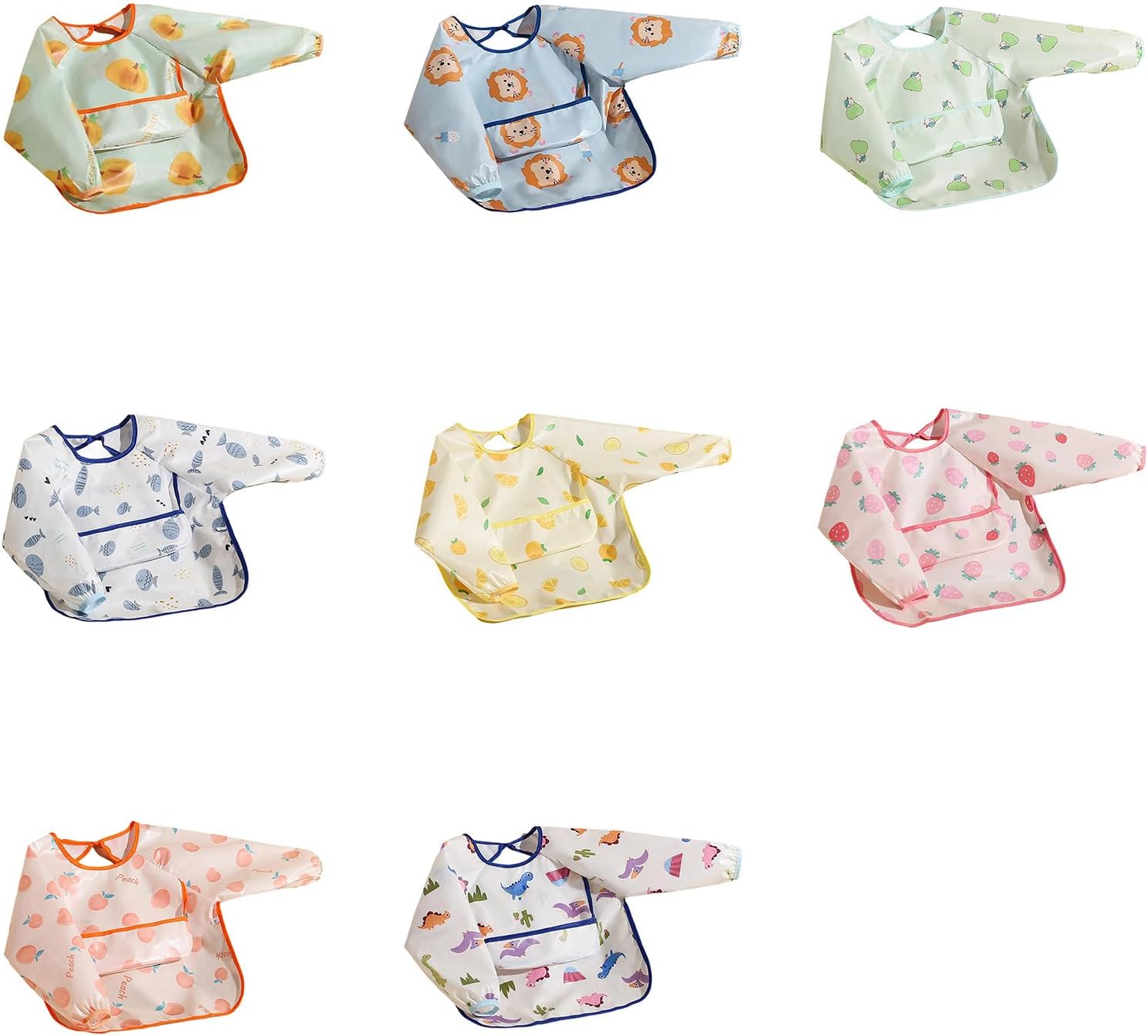 Grembiule a maniche lunghe per bambini, resistente alle macchie, leggero, facile da pulire, con tasca raccogli alimenti Caratteristiche: Tessuto impermeabilizzante: tessuto impermeabile, assicura che cibo e liquidi non penetrino, mantenendo puliti i vestiti del bambino e affrontando facilmente vari scenari di alimentazione. Design a maniche lunghe: protegge efficacemente il braccio del bambino dallo sporco, consentendo al bambino di godersi il cibo mentre la madre può stare tranquilla. Facile da regolare: dotato di cinghie regolabili, adatto per bambini di diverse età, facile da indossare e da togliere, rendendo più facile l'alimentazione. Motivo cartone animato: il grembiule è stampato con motivi a cartoni animati per attirare l'attenzione del bambino, più disposto a mangiare e aumentare il divertimento di cenare. Facile da pulire: liscio, facile da pulire o lavabile in lavatrice, per la mamma da pulire, risparmiando tempo ed energia. Uso multifunzionale: oltre ad essere utilizzato durante i pasti, questo grembiule può essere utilizzato anche come indumento protettivo per la creazione artistica, il gioco di fango e altre attività, con elevata praticità. Specifiche tecniche: Tessuto: tessuto in poliestere. Dimensioni: 90, 100, 110 (opzionale) Modello: fare riferimento alle immagini per la selezione prego Parametri: adatto per bambini da 6 a 18 mesi. Taglia: 90. Altezza consigliata: 75-90 cm. Taglia: 100. Altezza consigliata: 90-100 cm. Taglia: 110. Altezza consigliata: 95-110 cm. La confezione include: 1 grembiule a maniche lunghe per l'alimentazione del bambino. Nota: Considerare un margine di errore di 1-2 cm dovuto alla misurazione manuale. Si prega di consentire lievi differenze di colore dovute alla diversa risoluzione dello schermo.