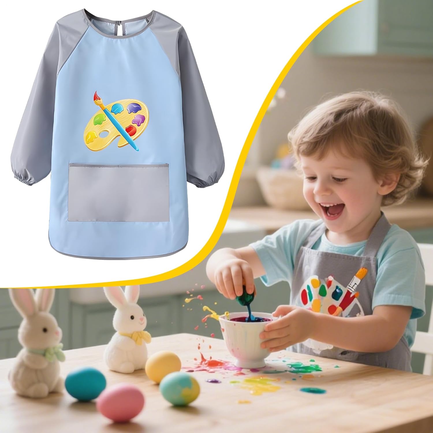 Grembiule Artistico Bambini - Grembiule Pittura Infanti - Maniche Lunghe per Giardinaggio, Pittura e Scuola Materna