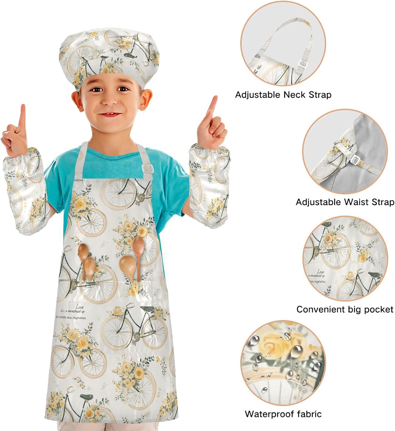 Dimensioni: il grembiule da cucina per bambini di piccole dimensioni per bambini dai 3 ai 6 anni è alto 52,1 cm, largo 48 cm. Il set di cappelli da chef per bambini di medie dimensioni per bambini dai 7 ai 12 anni è alto 59,7 cm, largo 50 cm. Il cappello delle due dimensioni misura 48-55,1 cm. ?La custodia misura 15 x 24,9 cm. Materiale di alta qualità: il grembiule per bambini è realizzato in poliestere, comodo, elegante, leggero e regolabile, impermeabile, facile da pulire. Protezione delle maniche con una grande tasca: due maniche possono proteggere i bambini da acqua, olio e pigmenti. Con grandi tasche decorative e funzionali, è comodo mettere alcuni strumenti quando si utilizza, adatto per imparare a cucinare, fare caramelle, dolci, ecc. Ampia applicazione: i grembiuli per bambini sono adatti per l'insegnamento della pittura e l'insegnamento della cucina, possono essere applicati anche per corsi d'arte, costumi di Halloween, oggetti di scena teatrali, feste di compleanno e le belle attività della decorazione per feste a tema. Contenuto della confezione: un grembiule impermeabile, un cappello da chef e due maniche. Gli adorabili grembiuli per bambini possono incoraggiarli a sviluppare le loro abilità di cucina, pittura, cottura, giardinaggio o altre abilità.