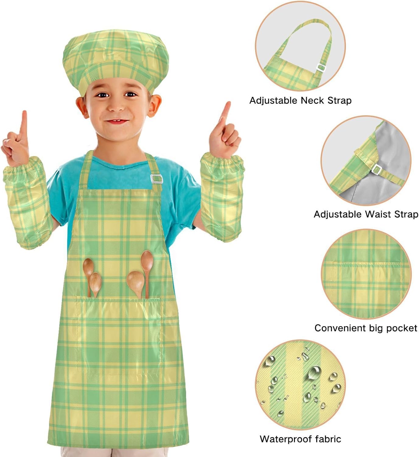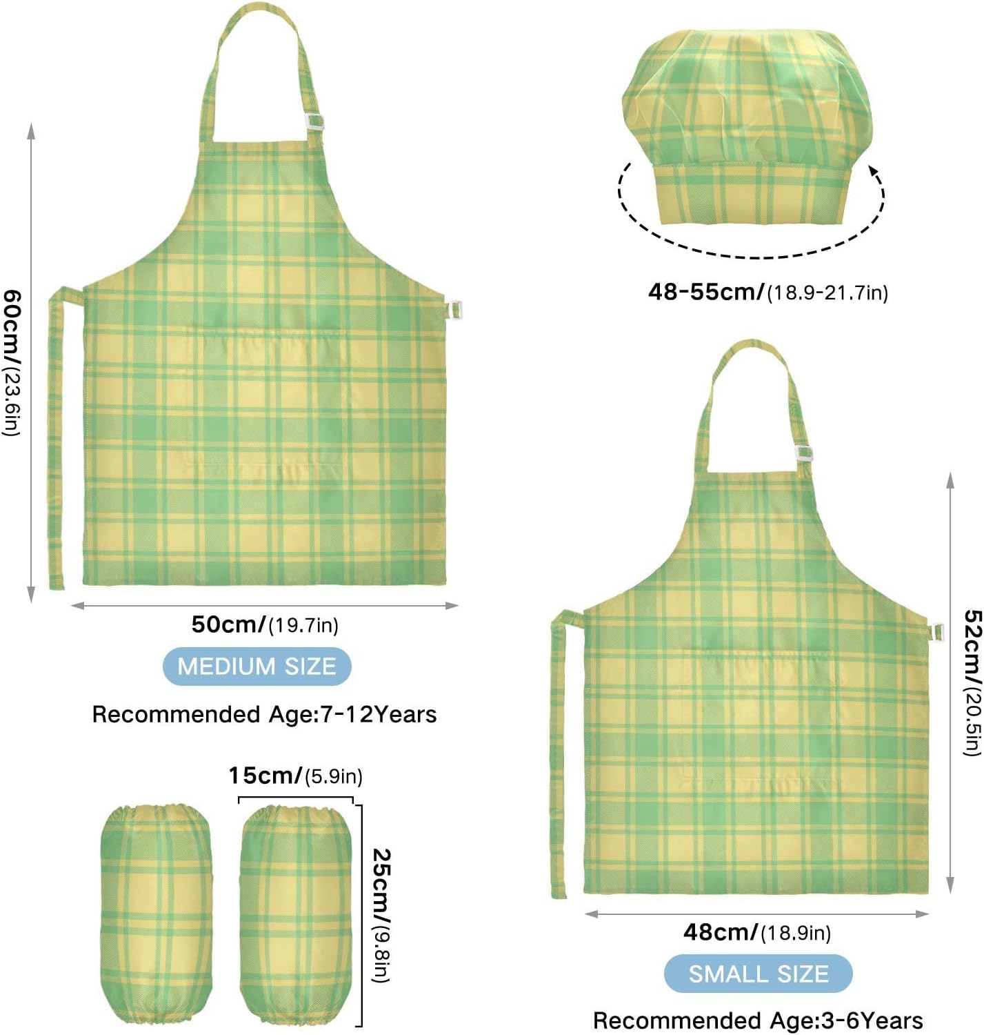 Dimensioni e articolo include: S: 18,9 x 20,5 L per bambini dai 3 ai 6 anni. M: 19,7 W x 23,5 L per età 7-12 anni. Il costume da chef per bambini include 1 grembiule leggero, 1 cappello da chef e 2 maniche. Il set da chef per bambini può dare ai bambini una buona esperienza di utilizzo per cucinare o dipingere come fornelli o pittori professionisti. Materiale di alta qualità: il set di grembiule per bambini è realizzato in poliestere, morbido tessuto impermeabile twill 290, per una sensazione confortevole quando si indossa. Protezione delle maniche con una grande tasca: due maniche possono proteggere i bambini da acqua, olio e pigmenti. Con grandi tasche decorative e funzionali, è comodo mettere alcuni strumenti quando si utilizza, adatto per imparare a cucinare, fare caramelle, dolci, ecc. Multiuso: i grembiuli per bambini non possono essere indossati per pittura, cucina, giardinaggio, lavaggio dei piatti, feste, arte, artigianato e attività scolastiche, ma anche per Natale, Ringraziamento, Halloween, San Patrizio, Capodanno, festa dei bambini, festival, vacanze, cene, compleanni e riunioni di famiglia. L'articolo include: il cappello da chef per bambini include 1 grembiule leggero, 1 cappello da chef e 2 maniche. Il grembiule da cucina per bambini può dare ai bambini una buona esperienza di utilizzo per cucinare o dipingere come fornelli o pittori professionisti.
