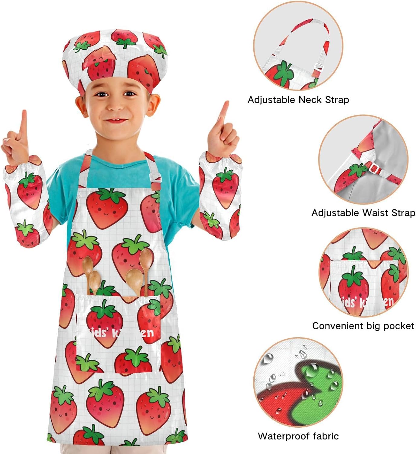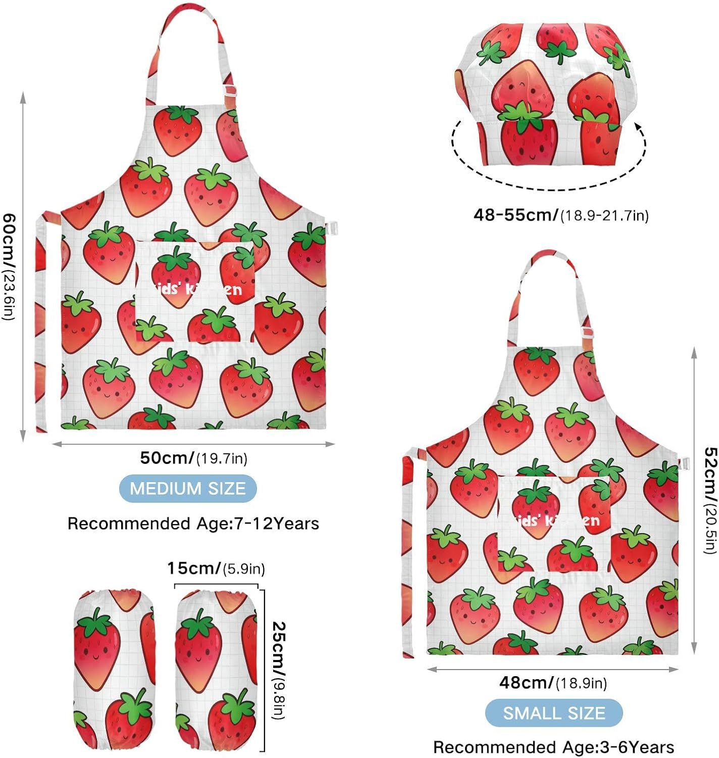 Suggerimento: M: 50 x 59,7 cm (età 7-12 anni). La taglia può adattarsi alla maggior parte dei ragazzi e delle ragazze. Si prega di scegliere la taglia giusta in base alle dimensioni specifiche. Materiale ecologico: il tessuto è impermeabile, leggero, accogliente, stampa adorabile alla moda, ecologico per la pelle dei bambini. Impermeabile Caratteristica: Realizzato in poliestere, il set di cappelli da chef per bambini è impermeabile. I bambini possono sentirsi liberi di imparare a cucinare e dipingere come preferiscono e possono mantenere i loro vestiti puliti allo stesso tempo. Ampia applicazione: i grembiuli per bambini sono adatti per l'insegnamento della pittura e l'insegnamento della cucina, possono essere applicati anche per corsi d'arte, costumi di Halloween, oggetti di scena teatrali, feste di compleanno e le belle attività della decorazione per feste a tema. Istruzioni di lavaggio: lavabile in lavatrice e a mano. Non candeggiare, lavare a secco e asciugare in asciugatrice.