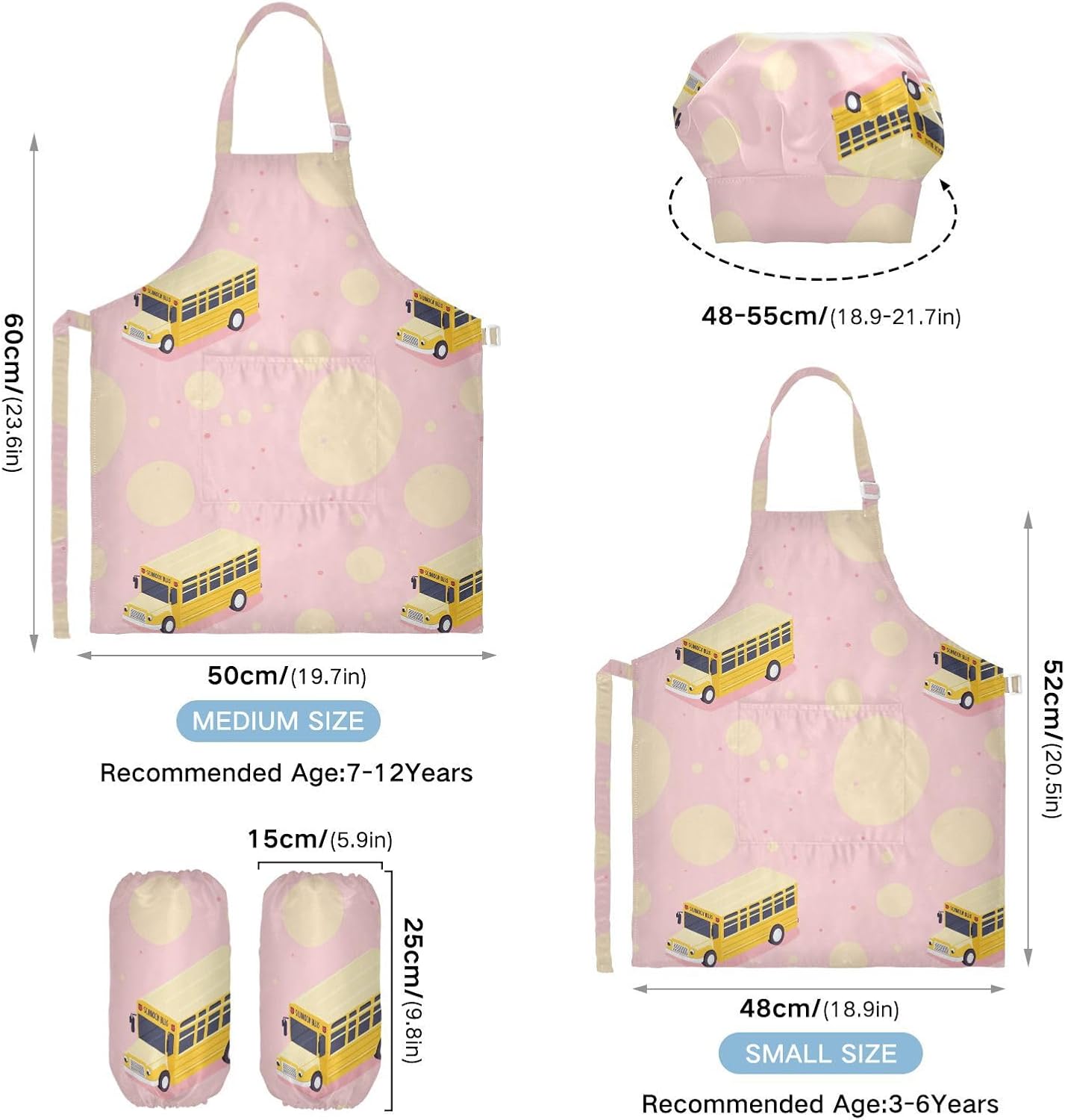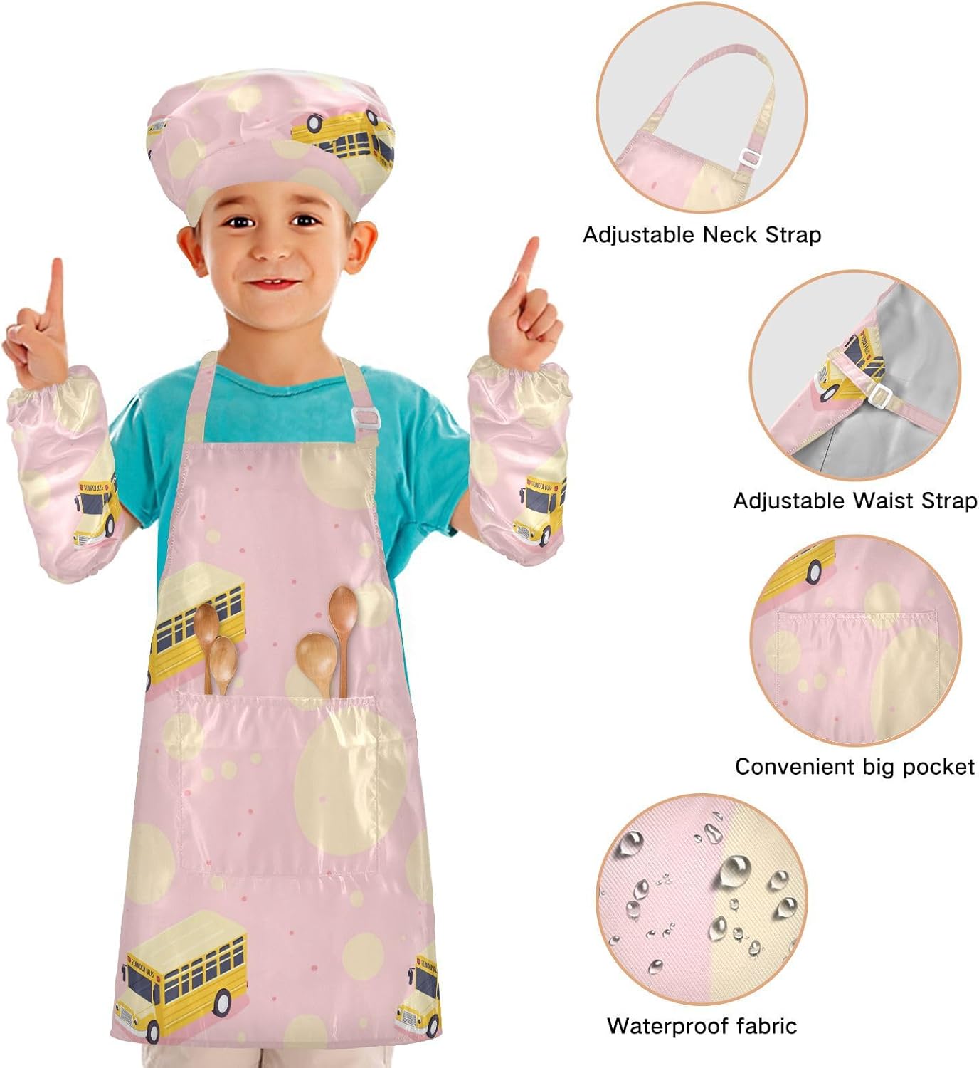 Dimensioni: il grembiule da cucina per bambini di piccole dimensioni per bambini dai 3 ai 6 anni è alto 52,1 cm, largo 48 cm. Il costume da chef per bambini di taglia media per età compresa tra 7 e 12 anni è alto 59,7 cm, largo 50 cm. Il cappello delle due dimensioni misura 48-55,1 cm. ?La custodia misura 15 x 24,9 cm. Materiale ecologico: il tessuto è impermeabile, leggero, accogliente, stampa adorabile alla moda, ecologico per la pelle dei bambini. Caratteristica impermeabile: Realizzato in poliestere, i grembiuli per bambini sono impermeabili. I bambini possono sentirsi liberi di imparare a cucinare e dipingere come preferiscono e possono mantenere i loro vestiti puliti allo stesso tempo. Ampia applicazione: il grembiule per bambini è adatto per l'insegnamento della pittura e l'insegnamento della cucina, può essere applicato anche per corsi d'arte, costumi di Halloween, oggetti di scena teatrali, feste di compleanno e le belle attività della decorazione per feste a tema. L'articolo include: il costume da chef per bambini include 1 grembiule leggero, 1 cappello da chef e 2 maniche. I grembiuli per bambini possono dare ai bambini una buona esperienza di utilizzo per cucinare o dipingere come fornelli o pittori professionisti.
