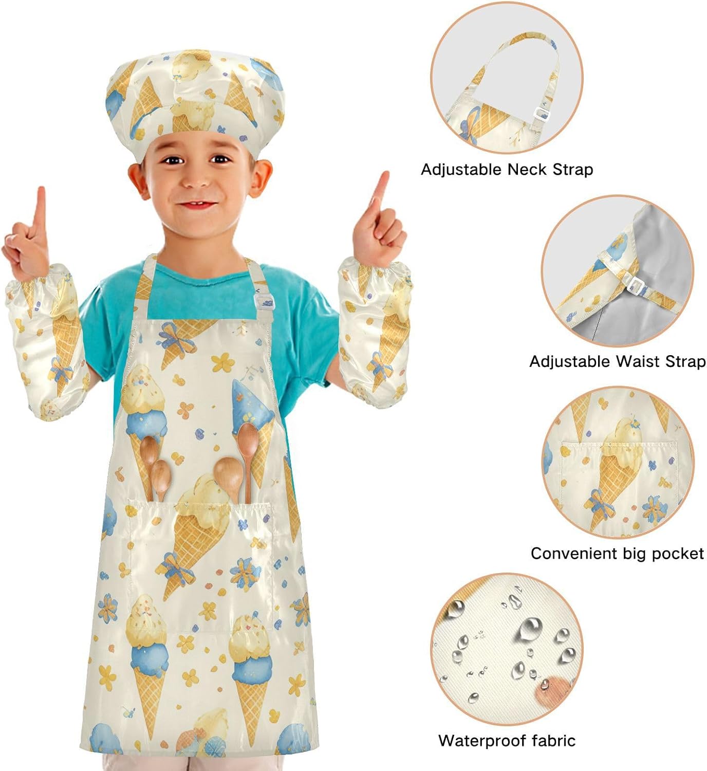 Dettagli del prodotto: Materiale: poliestere. La confezione include: 1 grembiule per bambini + 1 cappello da chef abbinato + 1 paio di maniche Dimensioni grembiule: S - 48 x 52,1 cm (età 3-5 anni), L - 19,7 x 59,7 cm (età 6-12 anni) Istruzioni per il lavaggio: Lavabile in lavatrice o a mano con acqua fredda. Perché sceglierci? Il nostro set di cappelli con grembiule per bambini è realizzato in poliestere di alta qualità, morbido al tatto e privo di sostanze chimiche, cinturino regolabile con lacci neri, morbido e confortevole, le cravatte lunghe possono essere facilmente modificate per adattarsi alla maggior parte delle dimensioni, adatte a diverse forme del corpo, sia un ragazzo che una ragazza, grasso o magro. I nostri simpatici grembiuli funzionali personalizzati con motivo vigoroso e design unico sono perfetti per tutti i tipi di occasioni, possono essere utilizzati per proteggere i vestiti durante la cottura, la cottura, l'artigianato, la pittura, il giardinaggio, il barbecue o qualsiasi altra cosa che potrebbe creare disordine. Questi set da cucina splendidamente progettati e confezionati sono anche un regalo perfetto per la cucina dei bambini, regalo per le vacanze e un regalo premuroso per i tuoi bambini che si divertono nella cottura e nella cucina.