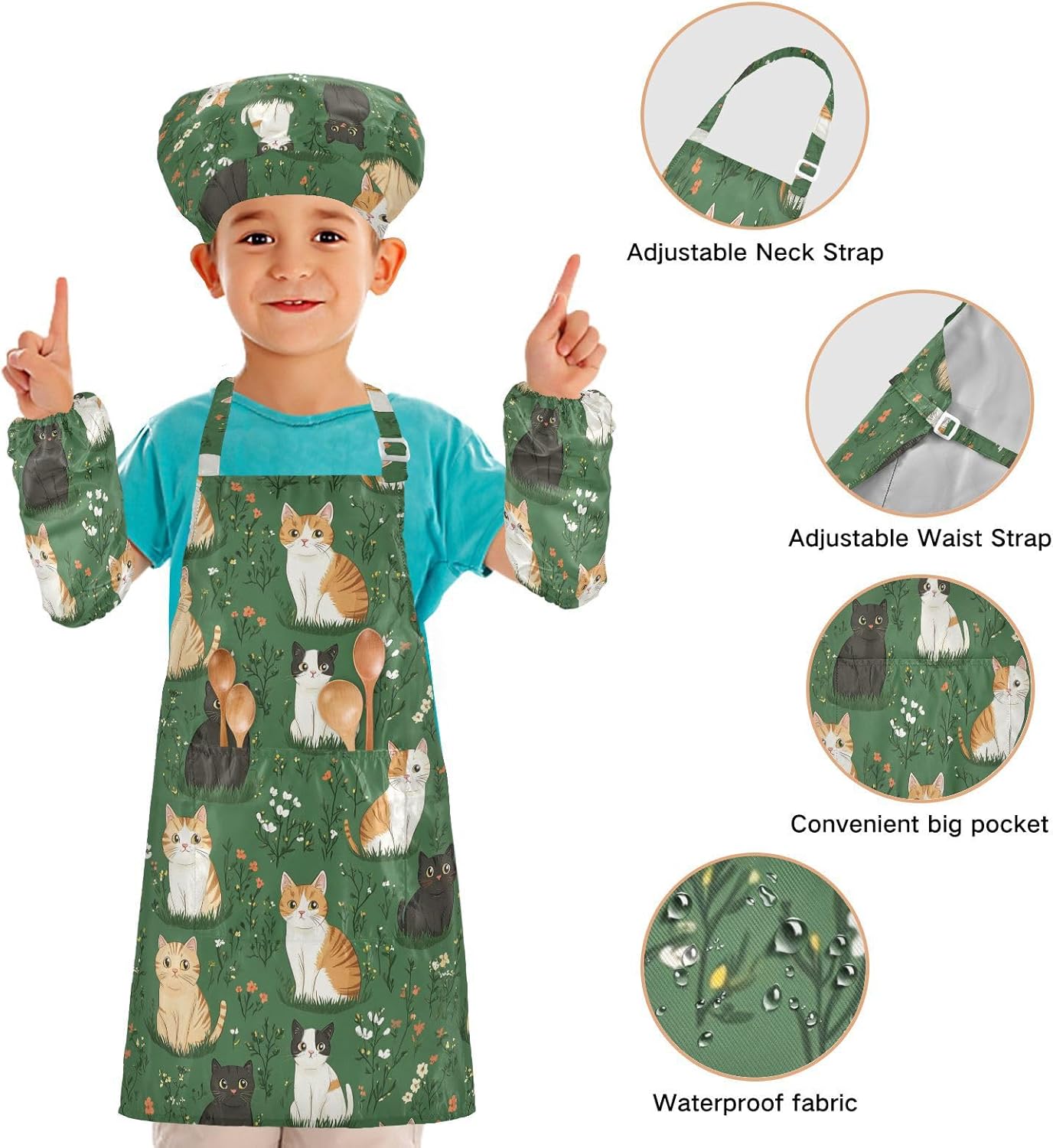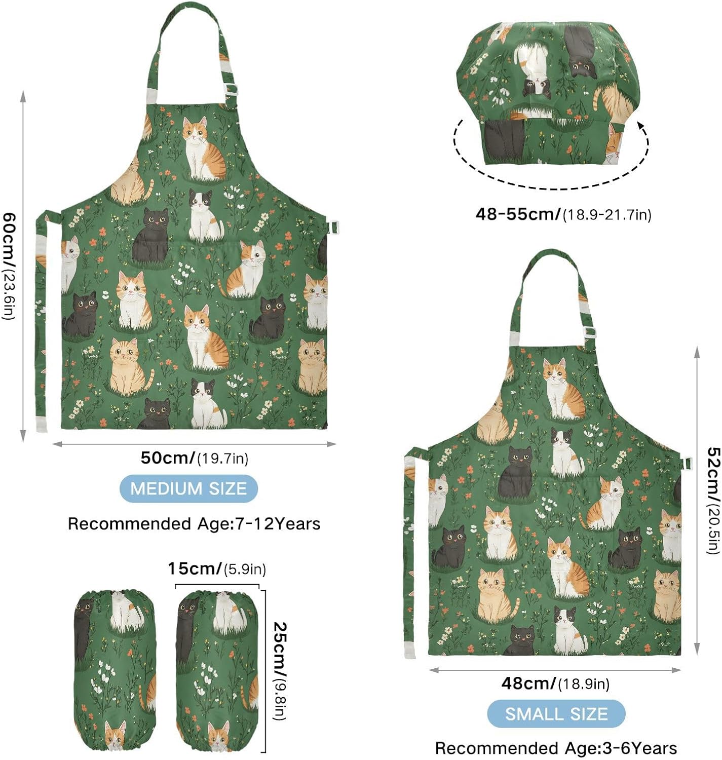 Dimensioni e articolo include: S: 18,9 x 20,5 L per bambini dai 3 ai 6 anni. M: 19,7 W x 23,5 L per età 7-12 anni. Il Kid Chef Costume include 1 grembiule leggero, 1 cappello da chef e 2 maniche. I grembiuli per bambini possono dare ai bambini una buona esperienza di utilizzo per cucinare o dipingere come fornelli o pittori professionisti. Materiale di alta qualità: il set da chef per bambini è realizzato in poliestere, comodo, elegante, leggero e regolabile, impermeabile, facile da pulire. Cinghia regolabile: il set da cucina per bambini da 3 pezzi con collo regolabile e cinturino in vita può fornire ai bambini una buona esperienza di utilizzo. Non devi preoccuparti se i grembiuli per bambini si adattano a loro o meno. Multiuso: il set da cucina per bambini da 3 pezzi non può essere indossato per pittura, cucina, giardinaggio, lavaggio dei piatti, feste, arte, artigianato e attività scolastiche, ma anche per Natale, Ringraziamento, Halloween, San Patrizio, Capodanno, festa dei bambini, festival, vacanze, cene, compleanni e riunioni di famiglia. L'articolo include: il grembiule per bambini include 1 grembiule leggero, 1 cappello da chef e 2 maniche. Il set di grembiuli per bambini può dare ai bambini una buona esperienza di utilizzo per cucinare o dipingere come fornelli o pittori professionisti.