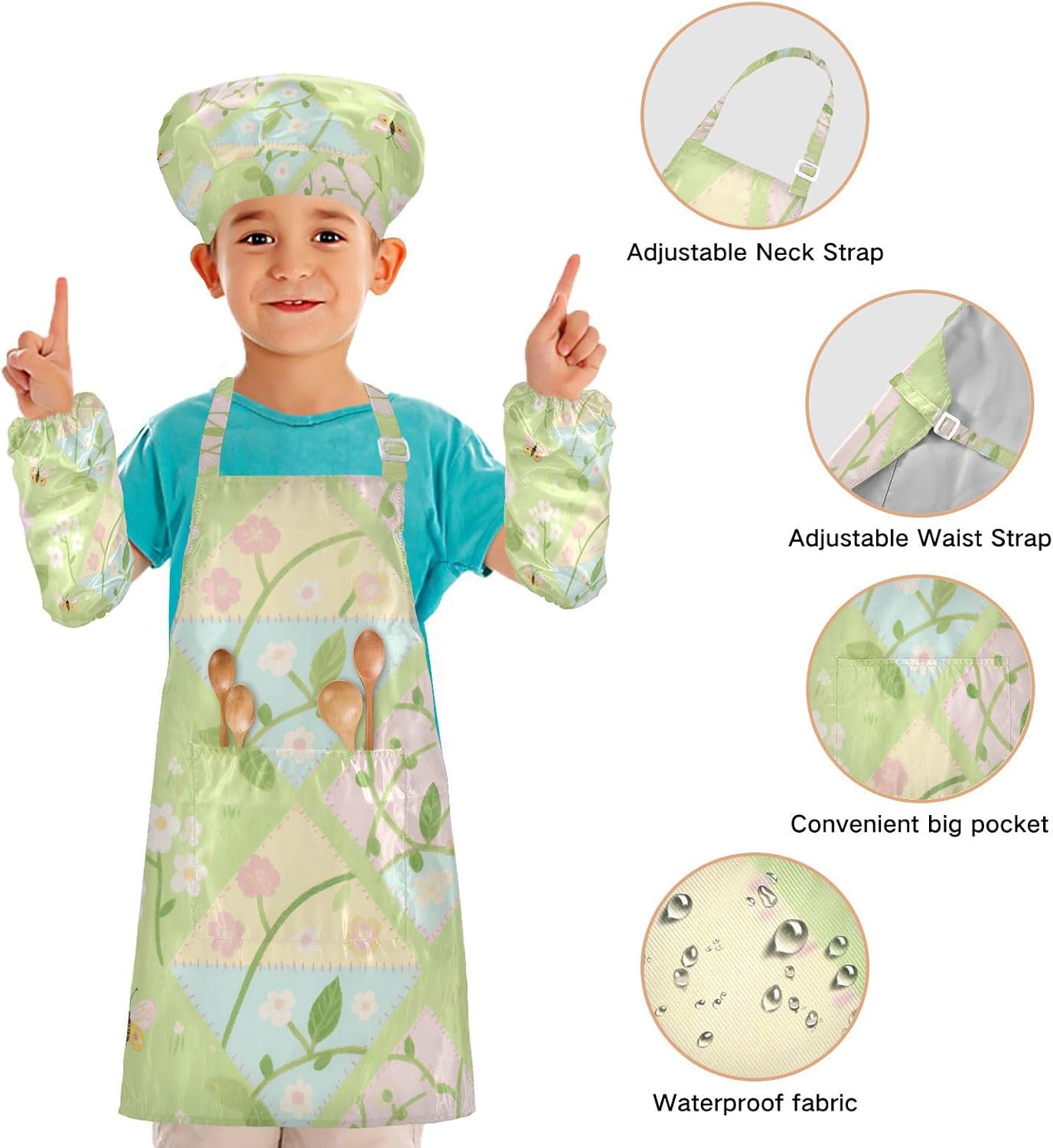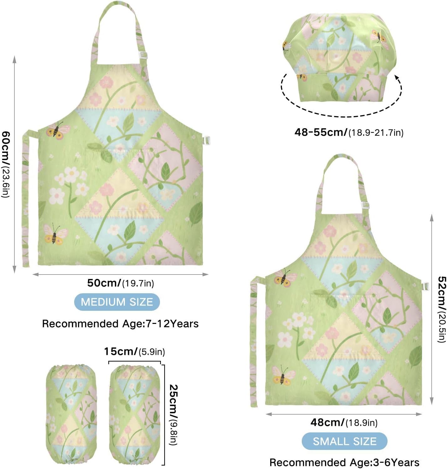 Taglia disponibile: S: 48 x 52 cm, per bambini dai 3 ai 6 anni. M: 50 x 59,7 cm, per bambini dai 7 ai 12 anni. Le taglie di cappelli e maniche condividono le stesse dimensioni. Cappello: 48-55 cm. Maniche: 15 x 24,9 cm. Materiale ecologico: il tessuto è impermeabile, leggero, accogliente, stampa adorabile alla moda, ecologico per la pelle dei bambini. Cinghia regolabile: il set da chef per bambini con collo regolabile e cinturino in vita può fornire ai bambini una buona esperienza di utilizzo. Non devi preoccuparti se il grembiule per bambini si adatta a loro o meno. Ampia applicazione: i grembiuli per bambini sono adatti per l'insegnamento della pittura e l'insegnamento della cucina, possono essere applicati anche per corsi d'arte, costumi di Halloween, oggetti di scena teatrali, feste di compleanno e le belle attività della decorazione per feste a tema. L'articolo include: il grembiule per bambini include 1 grembiule leggero, 1 cappello da chef e 2 maniche. Il cappello da chef per bambini può dare ai bambini una buona esperienza di utilizzo per cucinare o dipingere come fornelli o pittori professionisti.