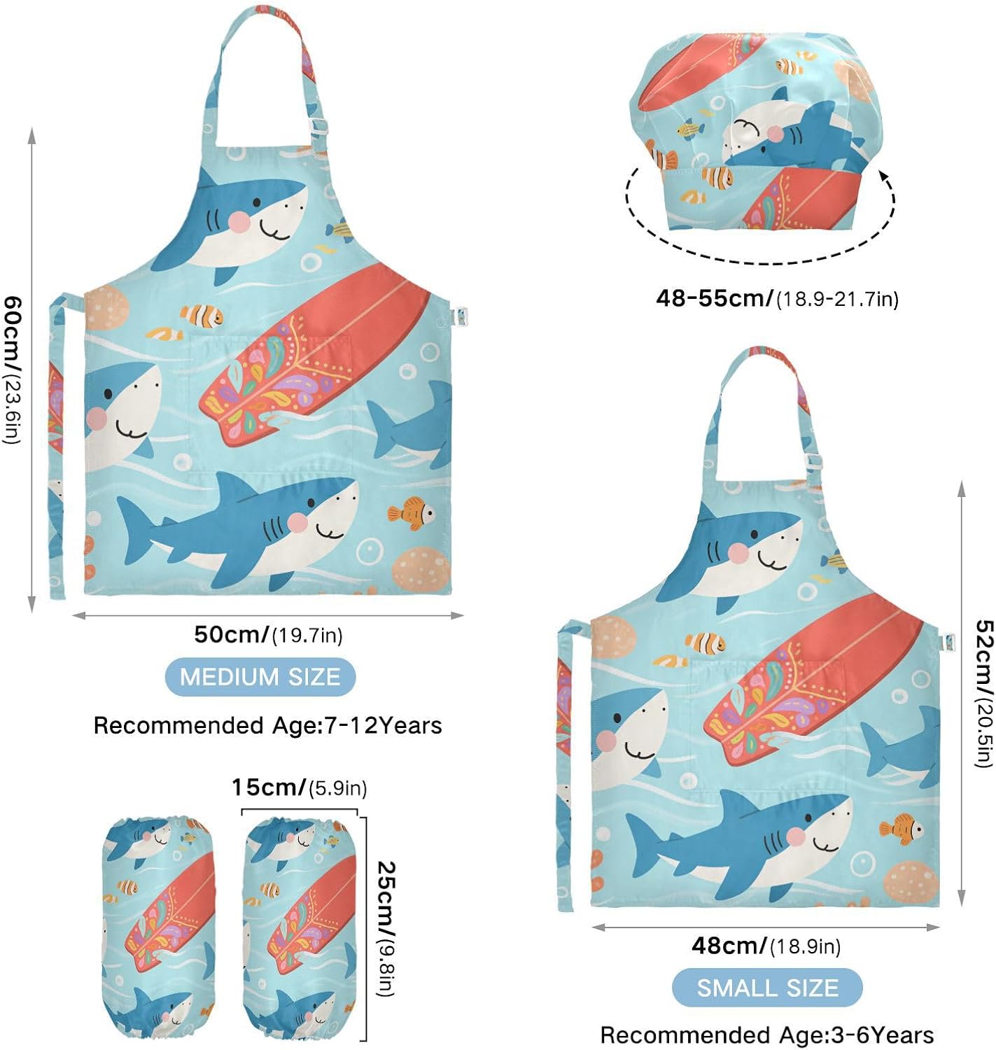 Dimensioni consigliate: S: 48 x 52 cm (età 3-6 anni). M: 50 x 59,7 cm (7-12 anni). La taglia può adattarsi alla maggior parte dei ragazzi e delle ragazze. Si prega di scegliere la taglia giusta in base alle dimensioni specifiche. Materiale di alta qualità: il set di grembiule per bambini è realizzato in poliestere, comodo, elegante, leggero e regolabile, impermeabile, facile da pulire. Cinghia regolabile: il costume da chef per bambini con collo regolabile e cinturino in vita può fornire ai bambini una buona esperienza di utilizzo. Non devi preoccuparti se il grembiule per bambini si adatta a loro o meno. Ampia applicazione: il set di grembiule per bambini è adatto per l'insegnamento della pittura e l'insegnamento della cucina, può essere applicato anche per corsi d'arte, costumi di Halloween, oggetti di scena teatrali, feste di compleanno e le belle attività della decorazione per feste a tema. Contenuto della confezione: un grembiule impermeabile, un cappello da chef e due maniche. L'adorabile set di grembiuli per bambini può incoraggiarli a sviluppare le loro abilità di cucina, pittura, cottura, giardinaggio o altre abilità.