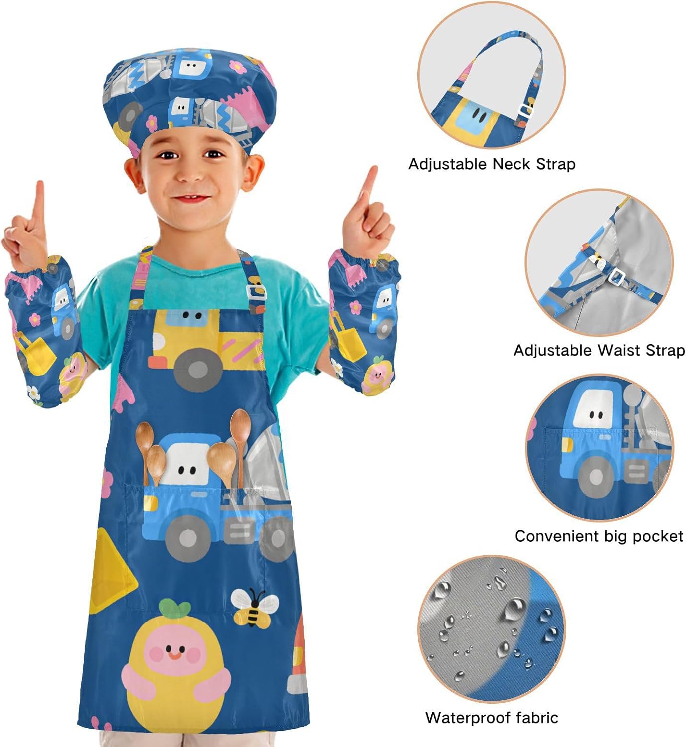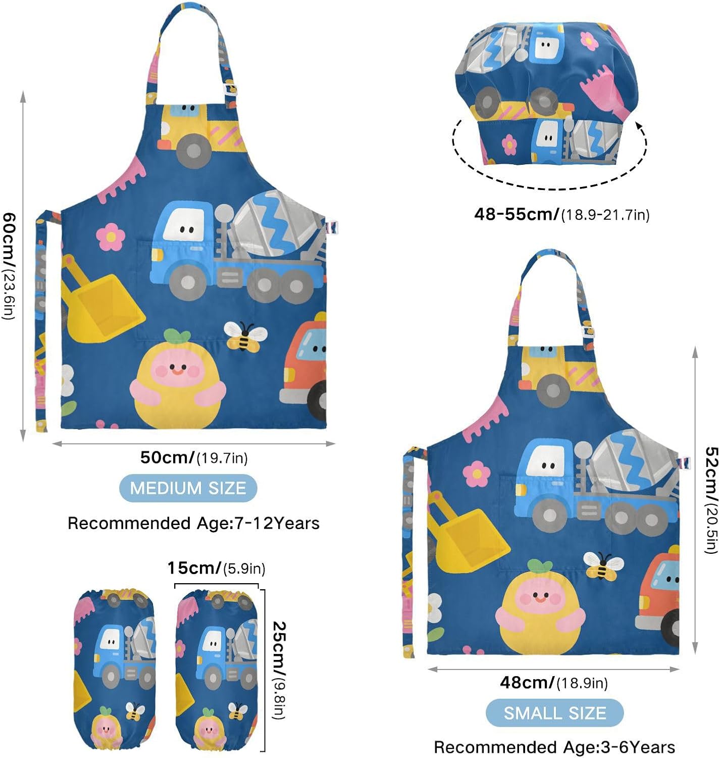 Dimensioni e articolo include: S: 18,9 x 20,5 L per bambini dai 3 ai 6 anni. M: 19,7 W x 23,5 L per età 7-12 anni. Il costume da chef per bambini include 1 grembiule leggero, 1 cappello da chef e 2 maniche. Il set di cappelli da chef per bambini può dare ai bambini una buona esperienza di utilizzo per cucinare o dipingere come fornelli o pittori professionisti. Materiale di alta qualità: il set di cappelli da chef per bambini è realizzato in poliestere, morbido tessuto impermeabile twill 290, per una sensazione confortevole quando si indossa. Cinghia regolabile: il collo lungo e le cinghie in vita sono regolabili. È possibile regolare la cinghia in base alla lunghezza che i bambini si sentono a proprio agio per attività o vestirsi Inoltre, la cinghia regolabile può fornire abbastanza spazio per i bambini da indossare o togliere. Multiuso: i grembiuli per bambini non possono essere indossati per pittura, cucina, giardinaggio, lavaggio dei piatti, feste, arte, artigianato e attività scolastiche, ma anche per Natale, Ringraziamento, Halloween, San Patrizio, Capodanno, festa dei bambini, festival, vacanze, cene, compleanni e riunioni di famiglia. Facile da pulire: il nostro prodotto è impermeabile e a prova di fuoriuscite. Basta strofinare, lavare in lavatrice e lavare a mano.