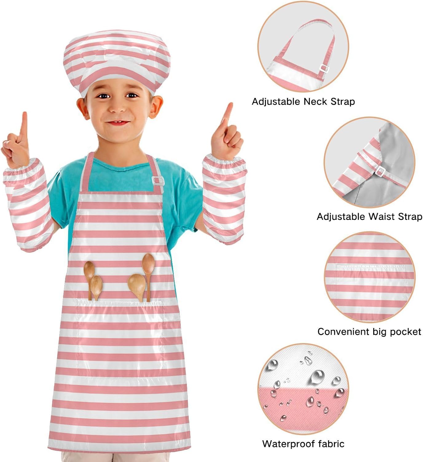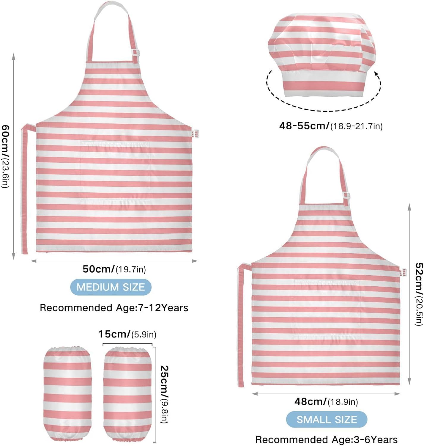 Grembiule da cucina per bambini, impermeabile, a righe e pois, senza cuciture, con tasche, per bambini dai 3 ai 12 anni