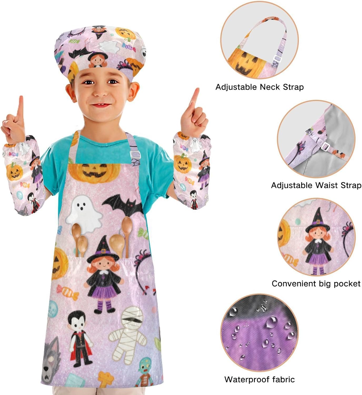 Dimensioni: il set di grembiule per bambini di piccole dimensioni per bambini dai 3 ai 6 anni è alto 52,1 cm, largo 48 cm. Il set di grembiule per bambini di medie dimensioni per età compresa tra 7 e 12 anni è alto 59,7 cm, largo 50 cm. Il cappello delle due dimensioni misura 48-55,1 cm. ?La custodia misura 15 x 24,9 cm. Materiale di alta qualità: il grembiule per bambini è realizzato in poliestere di alta qualità, comodo, elegante, leggero e regolabile, impermeabile, facile da pulire. Protezione delle maniche con una grande tasca: due maniche possono proteggere i bambini da acqua, olio e pigmenti. Con grandi tasche decorative e funzionali, è comodo mettere alcuni strumenti quando si utilizza, adatto per imparare a cucinare, fare caramelle, dolci, ecc. Multiuso: il grembiule artistico per bambini non può essere indossato per pittura, cucina, giardinaggio, lavaggio dei piatti, feste, arte, artigianato e attività scolastiche, ma anche per Natale, Ringraziamento, Halloween, San Patrizio, Capodanno, festa dei bambini, festival, vacanze, cene, compleanni e riunioni di famiglia. Contenuto della confezione: un grembiule impermeabile, un cappello da chef e due maniche. L'adorabile set da chef per bambini può incoraggiarli a sviluppare le loro abilità di cucina, pittura, cottura, giardinaggio o altre abilità.