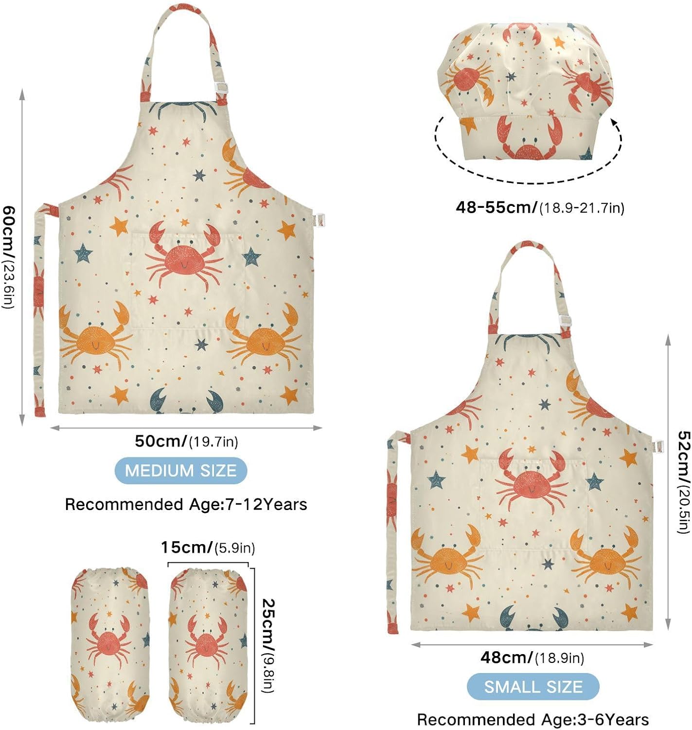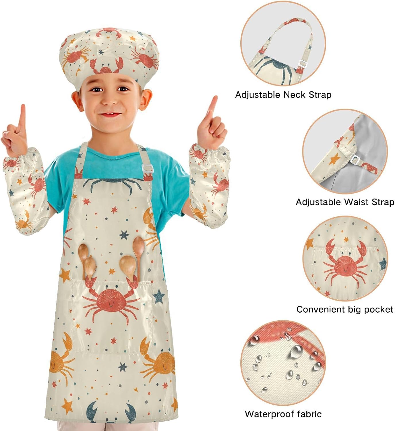 Grembiule da cuoco per bambini, adorabile grembiule da cucina con stella e granchio, con cinturino regolabile per il collo, per bambini dai 3 ai 12 anni