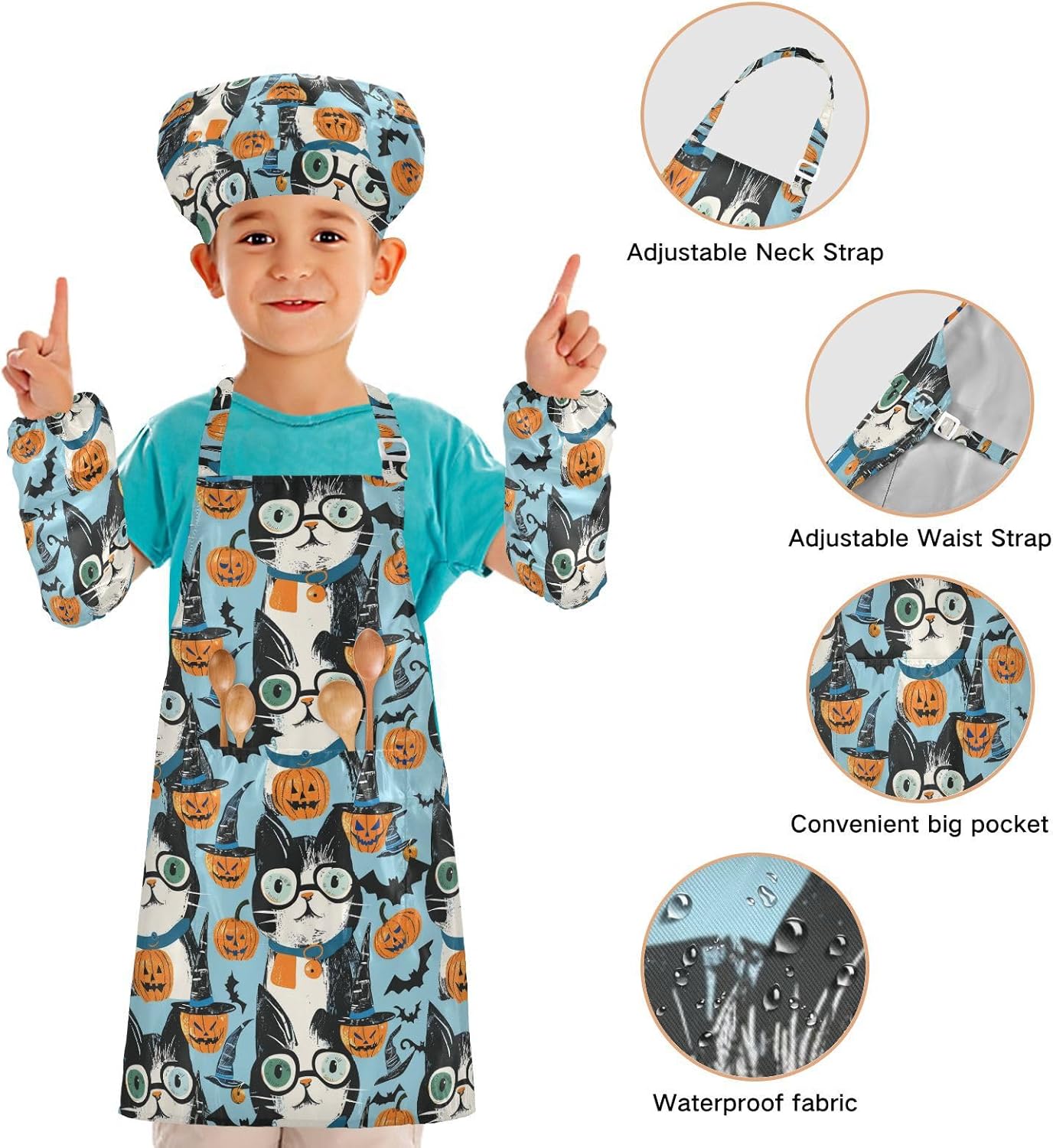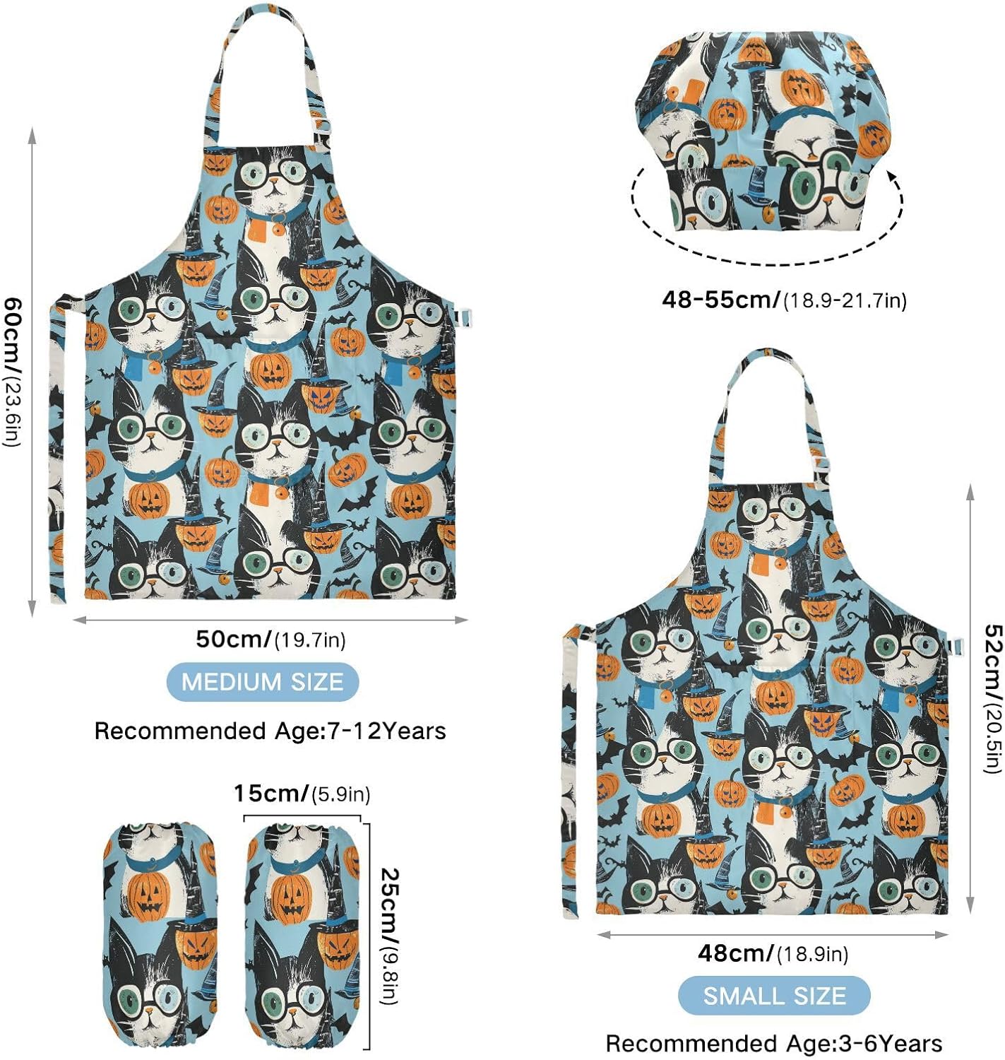 Dimensioni e articolo include: S: 18,9 x 20,5 L per bambini dai 3 ai 6 anni. M: 19,7 W x 23,5 L per età 7-12 anni. Il grembiule da cucina per bambini include 1 grembiule leggero, 1 cappello da chef e 2 maniche. Il grembiule artistico per bambini può dare ai bambini una buona esperienza di utilizzo per cucinare o dipingere come fornelli o pittori professionisti. Materiale ecologico: il tessuto è impermeabile, leggero, accogliente, stampa adorabile alla moda, ecologico per la pelle dei bambini. Protezione delle maniche con una grande tasca: due maniche possono proteggere i bambini da acqua, olio e pigmenti. Con grandi tasche decorative e funzionali, è comodo mettere alcuni strumenti quando si utilizza, adatto per imparare a cucinare, fare caramelle, dolci, ecc. Applicazioni versatili: ideale per i bambini per proteggere i vestiti durante la cottura, il giardinaggio, la cottura, il gioco, la produzione di caramelle, la cottura di torte, tele, arti e mestieri, lezioni in classe, faccende domestiche. Può anche essere una grande decorazione per costumi di Halloween, oggetti di scena teatrali, feste di compleanno, eventi carini, feste a tema, riunioni di famiglia e molto altro ancora. Facile da pulire: il nostro prodotto è impermeabile e a prova di fuoriuscite. Basta strofinare, lavare in lavatrice e lavare a mano.
