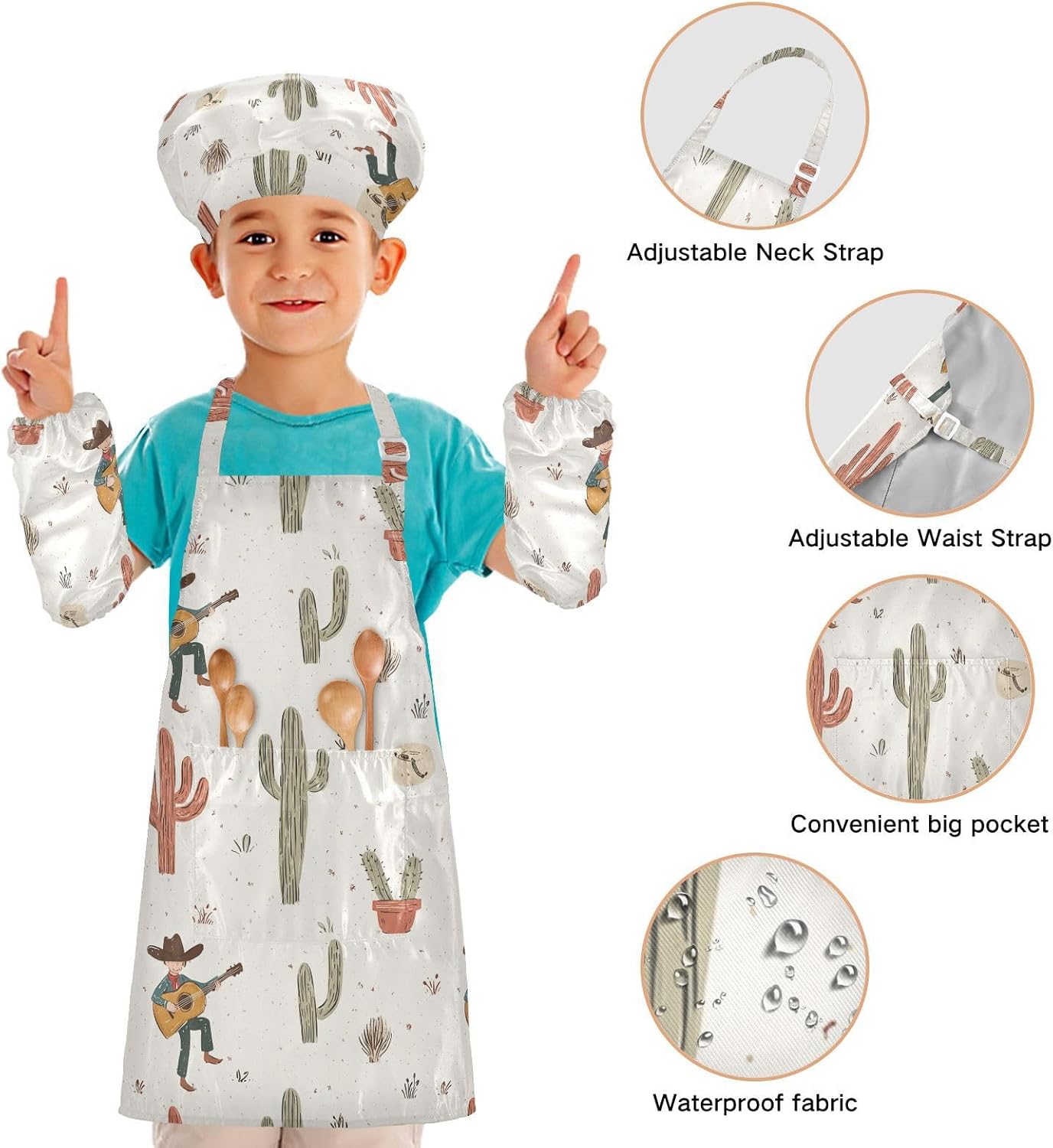 Dimensioni e articolo include: S: 18,9 x 20,5 L per bambini dai 3 ai 6 anni. M: 19,7 W x 23,5 L per età 7-12 anni. Il grembiule da cucina per bambini include 1 grembiule leggero, 1 cappello da chef e 2 maniche. Il set di grembiule per bambini può dare ai bambini una buona esperienza di utilizzo per cucinare o dipingere come fornelli o pittori professionisti. Materiale di alta qualità: il set di grembiule per bambini è realizzato in poliestere, morbido tessuto impermeabile twill 290, per una sensazione confortevole quando si indossa. Caratteristica impermeabile: Realizzato in poliestere, i grembiuli per bambini sono impermeabili. I bambini possono sentirsi liberi di imparare a cucinare e dipingere come preferiscono e possono mantenere i loro vestiti puliti allo stesso tempo. Ampia applicazione: il set di cappelli da chef per bambini è adatto per l'insegnamento della pittura e l'insegnamento della cucina, può essere applicato anche per corsi d'arte, costumi di Halloween, oggetti di scena teatrali, feste di compleanno e le belle attività della decorazione per feste a tema. L'articolo include: il cappello da chef per bambini include 1 grembiule leggero, 1 cappello da chef e 2 maniche. Il set di cappelli da chef per bambini può dare ai bambini una buona esperienza di utilizzo per cucinare o dipingere come fornelli o pittori professionisti.