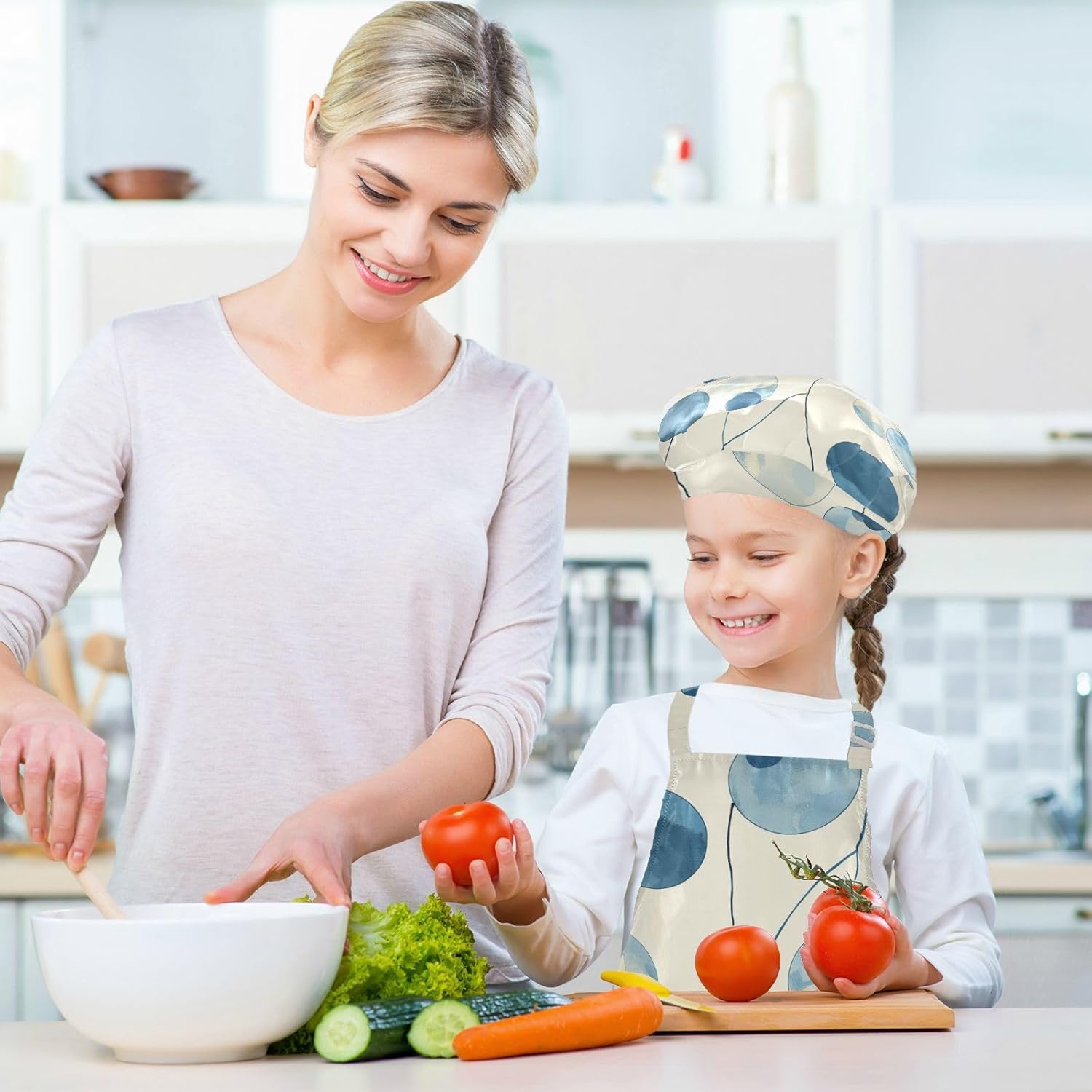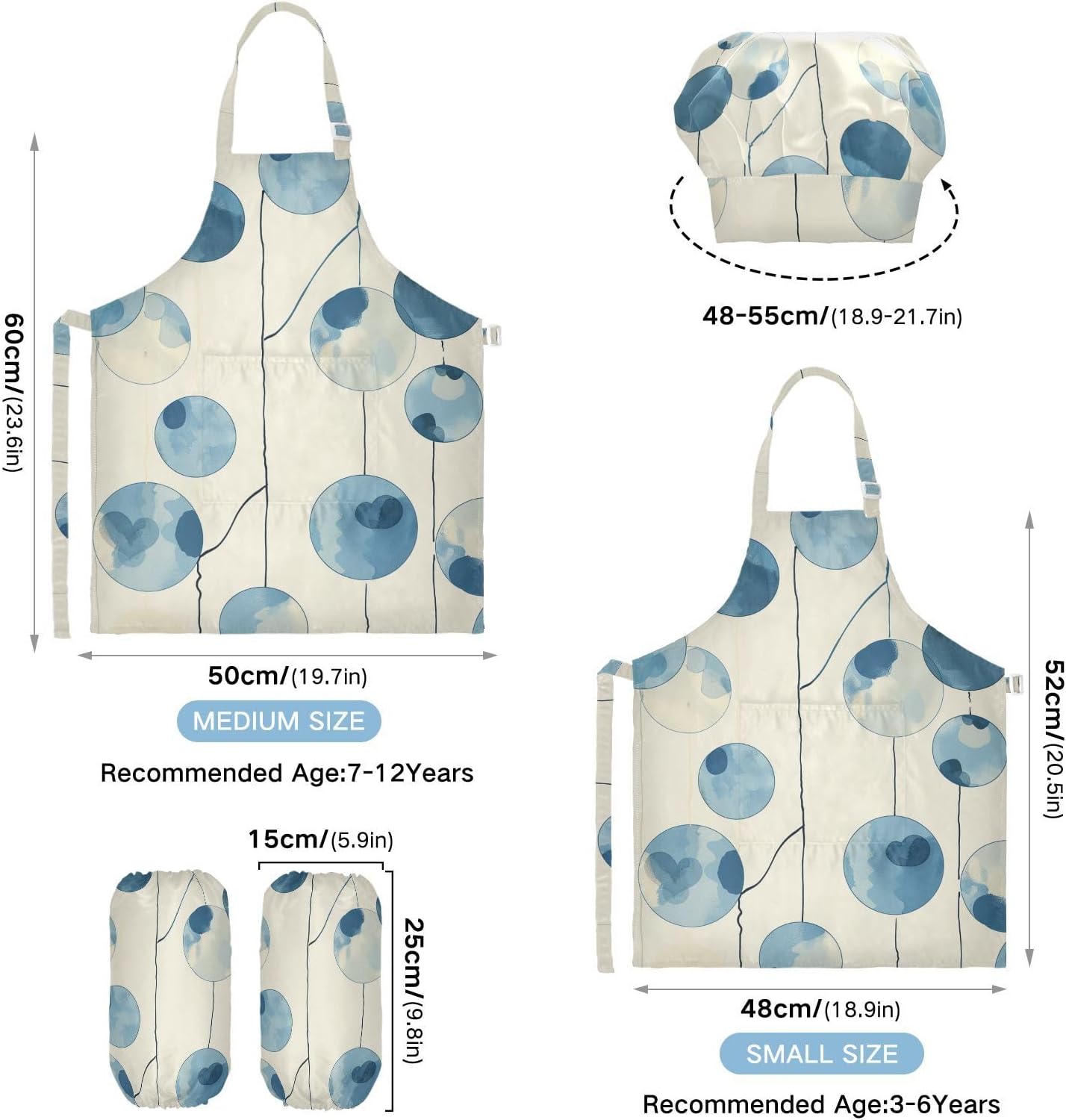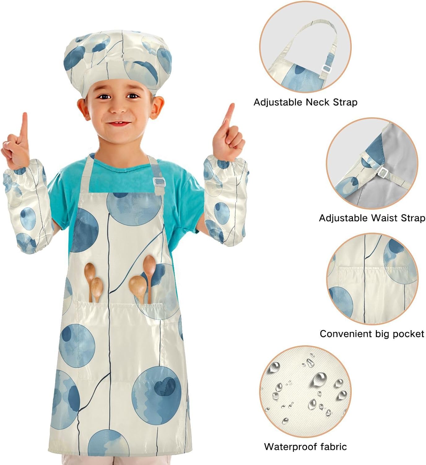 Dettagli del prodotto: Materiale: poliestere. La confezione include: 1 grembiule per bambini + 1 cappello da chef abbinato + 1 paio di maniche Dimensioni grembiule: S - 48 x 52,1 cm (età 3-5 anni), L - 19,7 x 59,7 cm (età 6-12 anni) Istruzioni per il lavaggio: Lavabile in lavatrice o a mano con acqua fredda. Perché sceglierci? Il nostro set di cappelli con grembiule per bambini è realizzato in poliestere di alta qualità, morbido al tatto e privo di sostanze chimiche, cinturino regolabile con lacci neri, morbido e confortevole, le cravatte lunghe possono essere facilmente modificate per adattarsi alla maggior parte delle dimensioni, adatte a diverse forme del corpo, sia un ragazzo che una ragazza, grasso o magro. I nostri simpatici grembiuli funzionali personalizzati con motivo vigoroso e design unico sono perfetti per tutti i tipi di occasioni, possono essere utilizzati per proteggere i vestiti durante la cottura, la cottura, l'artigianato, la pittura, il giardinaggio, il barbecue o qualsiasi altra cosa che potrebbe creare disordine. Questi set da cucina splendidamente progettati e confezionati sono anche un regalo perfetto per la cucina dei bambini, regalo per le vacanze e un regalo premuroso per i tuoi bambini che si divertono nella cottura e nella cucina.