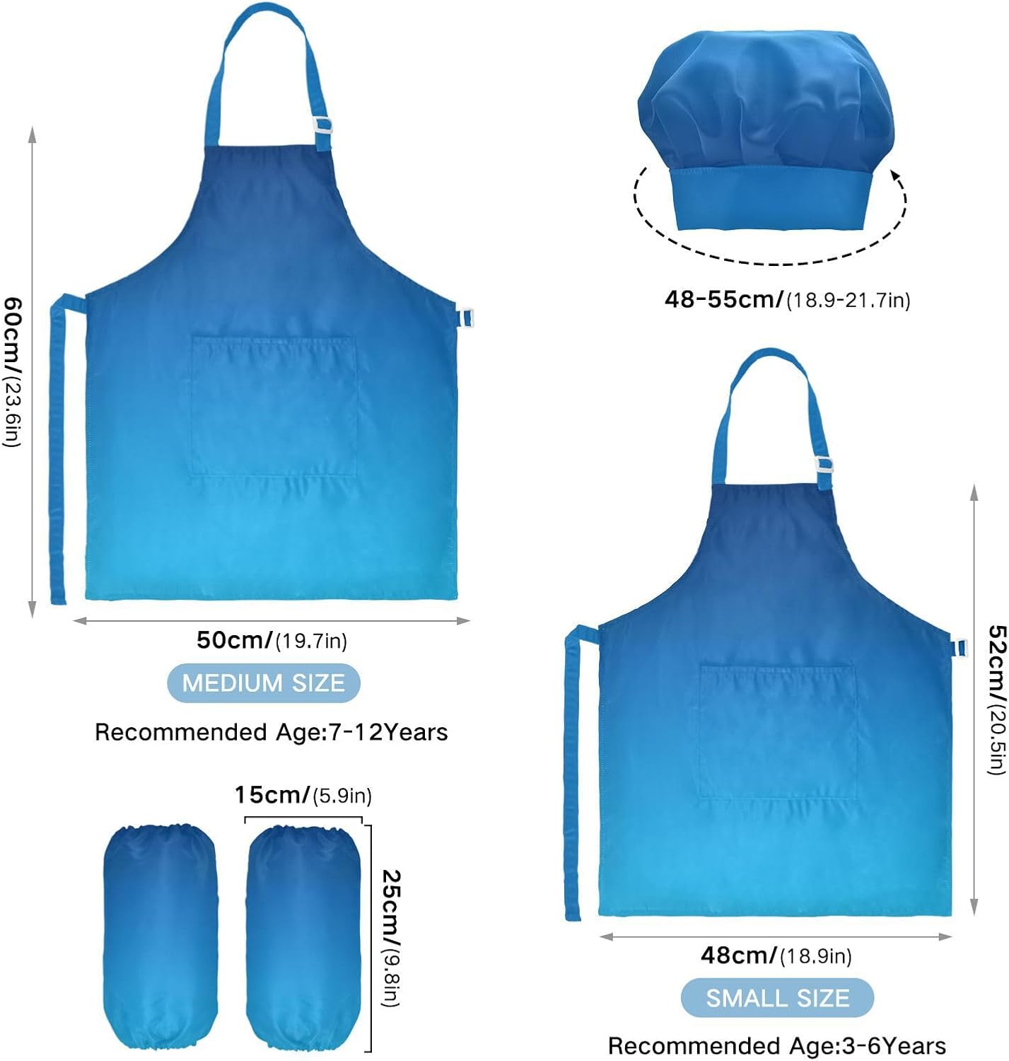 Dimensioni e articolo include: S: 18,9 x 20,5 L per bambini dai 3 ai 6 anni. M: 19,7 W x 23,5 L per età 7-12 anni. Il grembiule per bambini include 1 grembiule leggero, 1 cappello da chef e 2 maniche. Il grembiule per bambini può dare ai bambini una buona esperienza di utilizzo per cucinare o dipingere come fornelli o pittori professionisti. Tessuto comodo: il {parola chiave} è realizzato in tessuto di poliestere di alta qualità, morbido, ecologico, impermeabile, a prova di fuoriuscite e, processo di stampa squisito brillante. Cinghia regolabile: il collo lungo e le cinghie in vita sono regolabili. È possibile regolare la cinghia in base alla lunghezza che i bambini si sentono a proprio agio per attività o vestirsi Inoltre, la cinghia regolabile può fornire abbastanza spazio per i bambini da indossare o togliere. Multiuso: i grembiuli per bambini non possono essere indossati per pittura, cucina, giardinaggio, lavaggio dei piatti, feste, arte, artigianato e attività scolastiche, ma anche per Natale, Ringraziamento, Halloween, San Patrizio, Capodanno, festa dei bambini, festival, vacanze, cene, compleanni e riunioni di famiglia. Contenuto della confezione: un grembiule impermeabile, un cappello da chef e due maniche. L'adorabile grembiule artistico per bambini può incoraggiarli a sviluppare le loro abilità di cucina, pittura, cottura, giardinaggio o altre abilità.