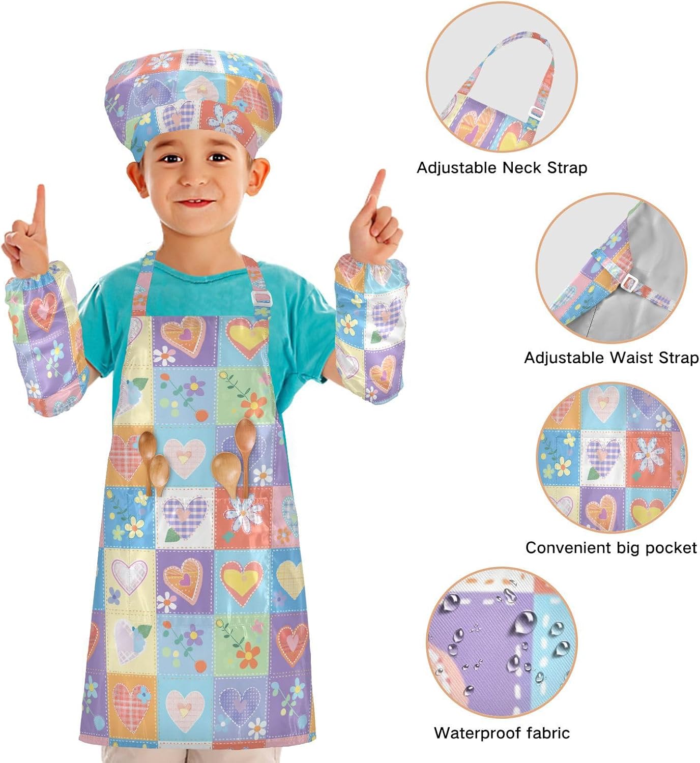 Dimensioni e articolo include: S: 18,9 x 20,5 L per bambini dai 3 ai 6 anni. M: 19,7 W x 23,5 L per età 7-12 anni. Il cappello da chef per bambini include 1 grembiule leggero, 1 cappello da chef e 2 maniche. Il costume da chef per bambini può dare ai bambini una buona esperienza di utilizzo per cucinare o dipingere come cucine o pittori professionisti. Materiale di alta qualità: il cappello da chef per bambini è realizzato in poliestere, comodo, elegante, leggero e regolabile, impermeabile, facile da pulire. Impermeabile Caratteristica: Realizzato in poliestere, il grembiule da cucina per bambini è impermeabile. I bambini possono sentirsi liberi di imparare a cucinare e dipingere come preferiscono e possono mantenere i loro vestiti puliti allo stesso tempo. Multiuso: il grembiule da cucina per bambini non può essere indossato per pittura, cucina, giardinaggio, lavaggio dei piatti, feste, arte, artigianato e attività scolastiche, ma anche per Natale, Ringraziamento, Halloween, San Patrizio, Capodanno, festa dei bambini, festival, vacanze, cene, compleanni e riunioni di famiglia. Contenuto della confezione: un grembiule impermeabile, un cappello da chef e due maniche. L'adorabile grembiule da cucina per bambini può incoraggiarli a sviluppare le loro abilità di cucina, pittura, cottura, giardinaggio o altre abilità.