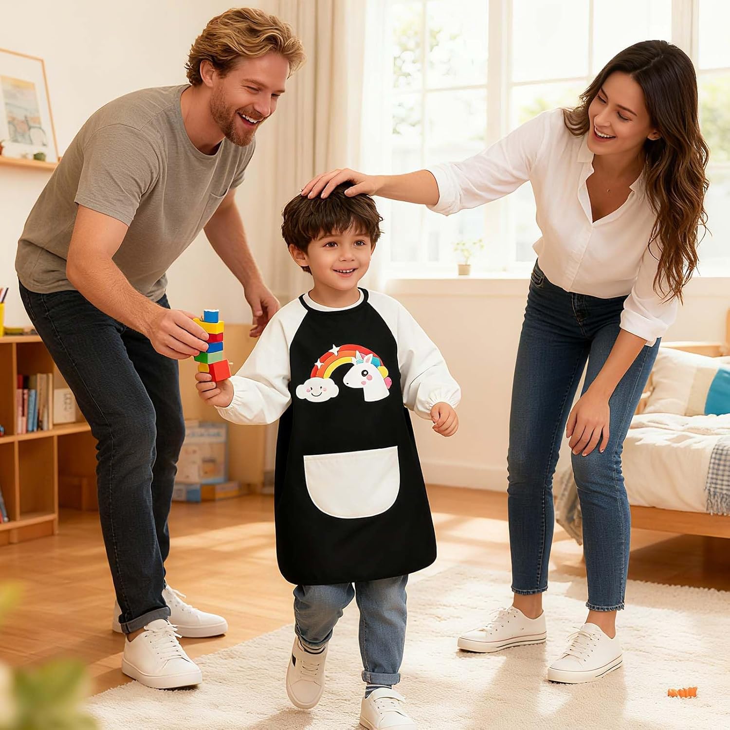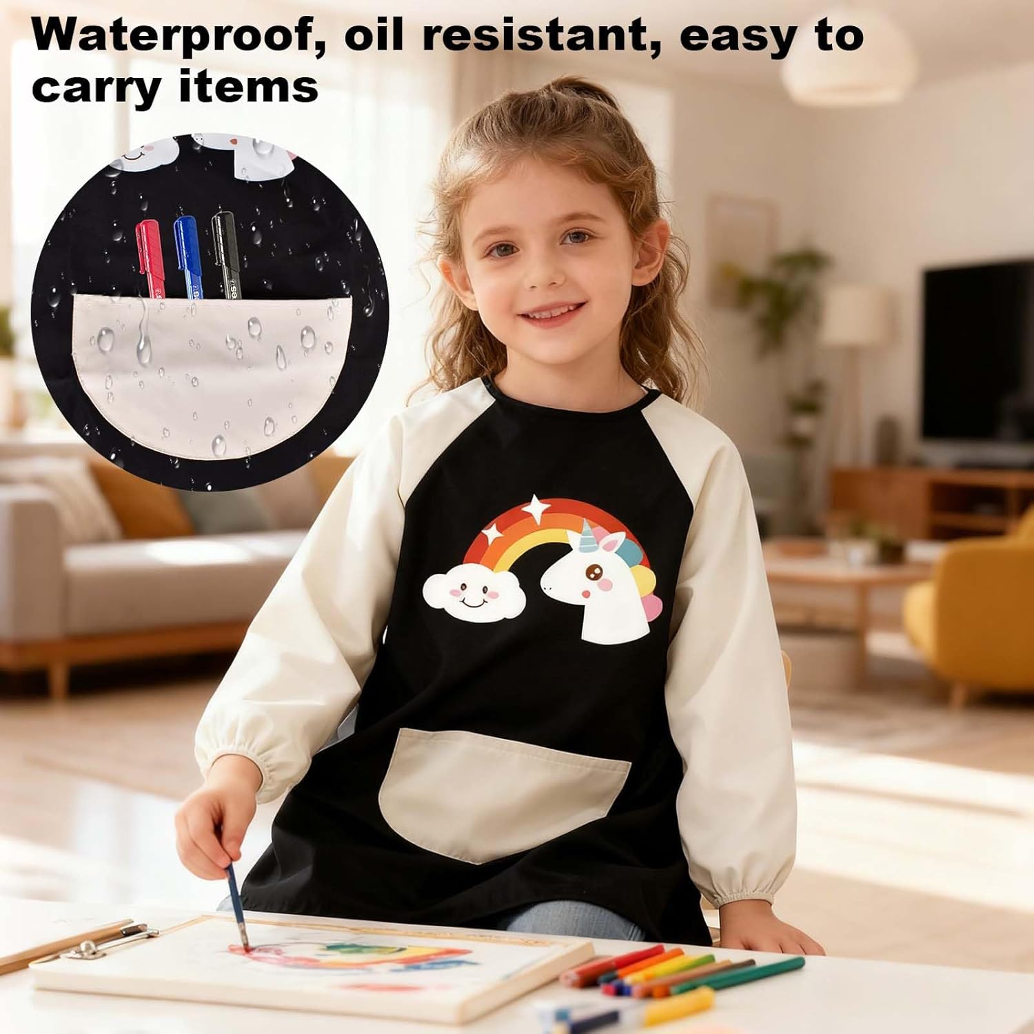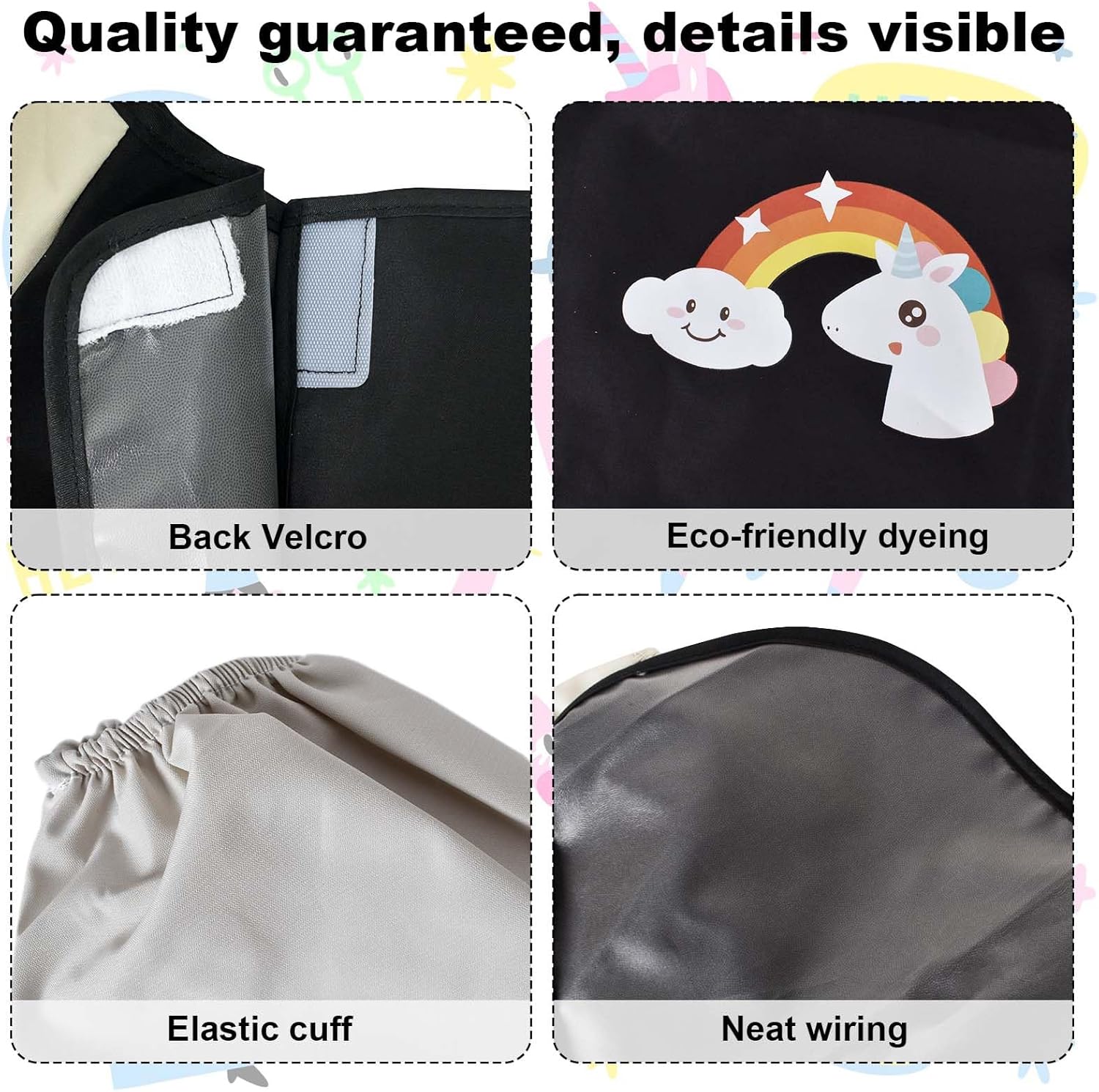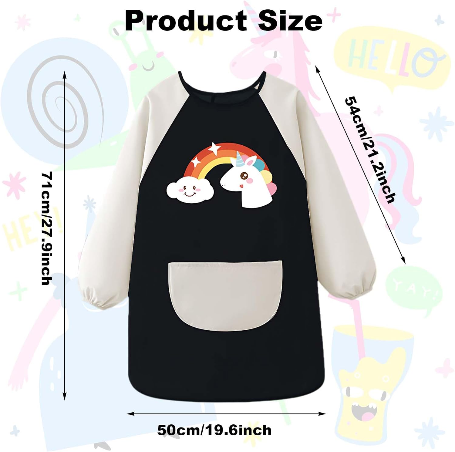 Materiale di alta qualità: il tessuto della nostra scuola di prima classe è realizzato in fibra di poliestere, comodo da indossare e presenta un rivestimento impermeabile sulla superficie. È morbido, leggero, resistente all'usura, traspirante, non stinge e facile da pulire. Pratico design tascabile: il camice da pittura per bambini con tasche ha tasche decorative e funzionali, semplice e pratico. Comodo per i bambini per riporre spazzole, giocattoli, asciugamani di carta o qualsiasi altra cosa vogliono. Design con copertura completa: il camice da pittore per bambini dai 7 ai 12 anni è dotato di maniche lunghe, che possono coprire meglio le braccia e i vestiti del vostro bambino per evitare sporco e macchie. I polsini sono elastici per proteggere le braccia del bambino da sporco e colore. Design confortevole regolabile: questa scuola per pittura è dotata di cinghie adesive regolabili per garantire che bambini di diverse età (adatto per 5-8 anni) possano indossarli comodamente. Il suo design ampio garantisce inoltre flessibilità e libertà di movimento dei bambini. Molteplici possibilità di utilizzo: il nostro grembiule da pittura per bambini può essere utilizzato per dipingere, scrivere, cucinare, fai da te a scuola o a casa. Può essere utilizzato anche per lezioni di arte, feste di compleanno e feste a tema, per mantenere i bambini puliti e ordinati durante le attività quotidiane.