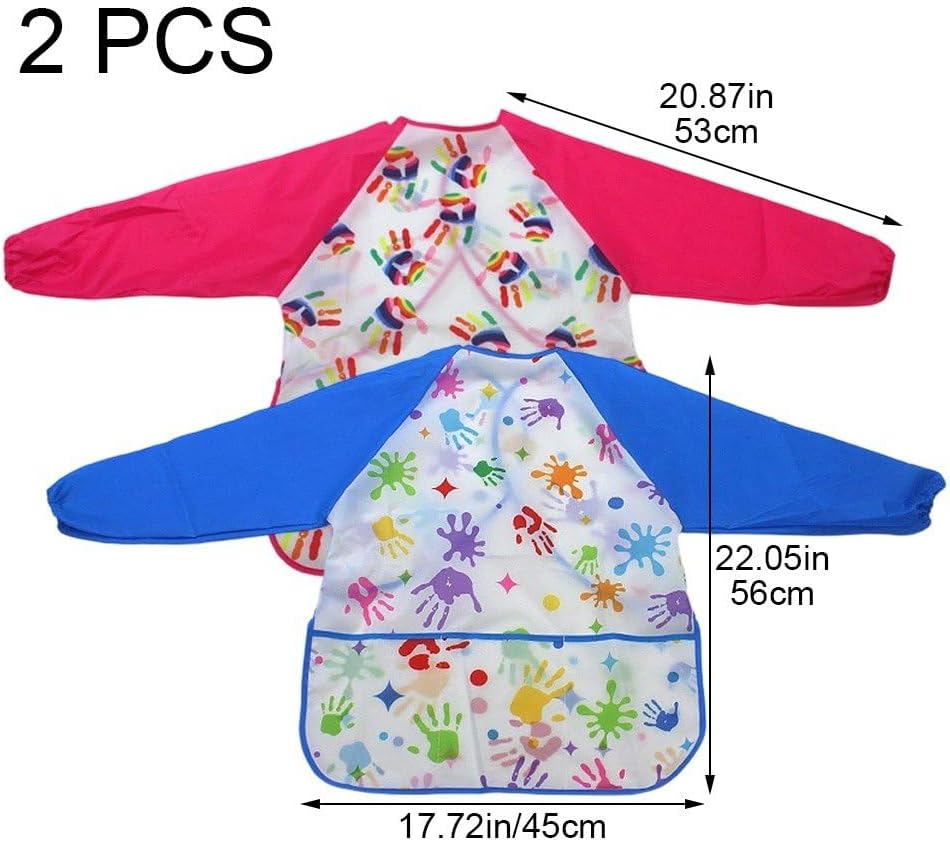 【Polsini elastici e tasche spaziose】Il grembiule a maniche lunghe è dotato di polsini elastici, che possono proteggere meglio i vestiti e le braccia del bambino vernice/sporco. 【Materiale sicuro】Il grembiule disegno per bambini è realizzato in poliestere sicuro e atossico, privo di BPA, impermeabile e riutilizzabile, estremamente traspirante e facile pulire. Si consiglia di lavare a mano gli abiti lavoro. 【Ampia applicazione】Il grembiule artistico per bambini può essere utilizzato a casa, a scuola, durante i corsi di pittura, in cucina, perfetto per dipingere, cucinare, dipingere, creare, usare l'argilla, mangiare, giocare, . 【Facile indossare】 maglietta a maniche lunghe dipinta, resistente all'olio e alle acque reflue, adotta una parte posteriore stabile e facile indossare e togliere. 【Regalo perfetto】I grembiuli per bambini sono perfetti per contenere colori, acquerelli, spugne e pennelli, per mantenere puliti i vestiti dei vostri bambini. Un regalo molto pratico che permetterà vostro bambino di divertirsi giocando ovunque.