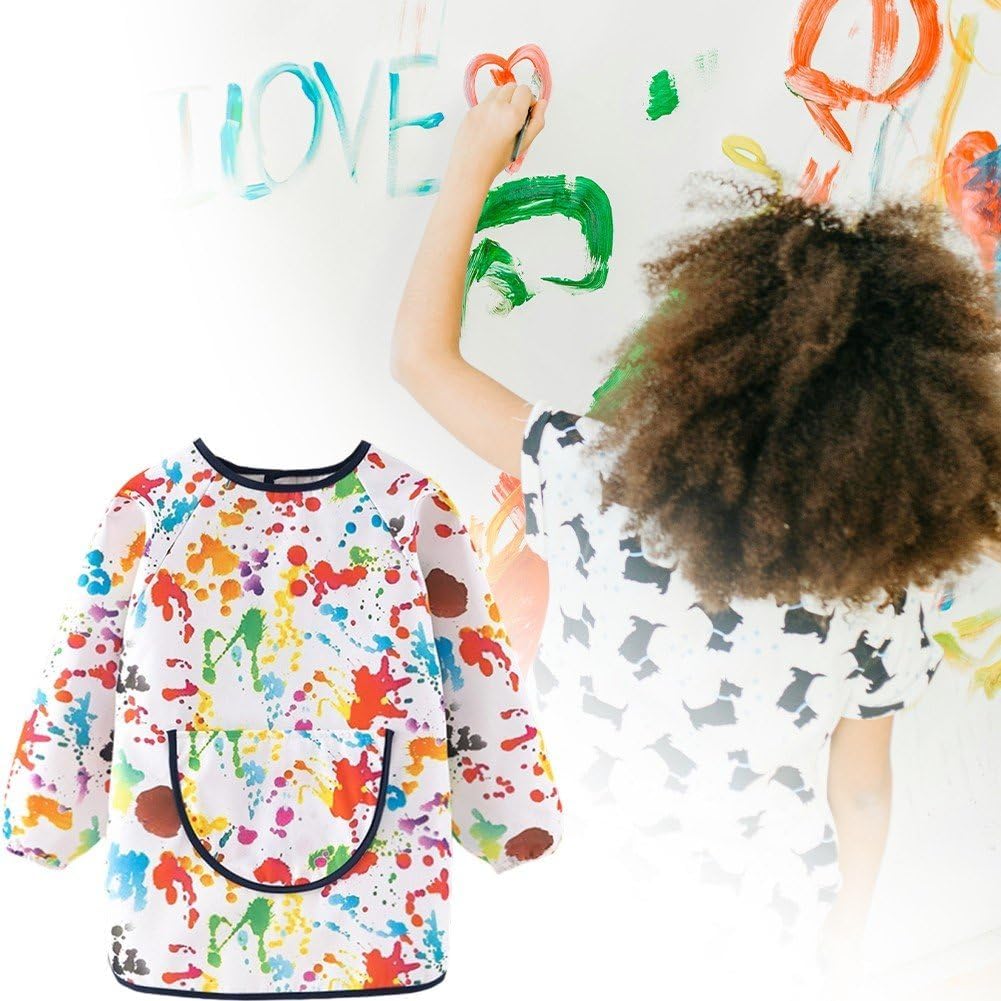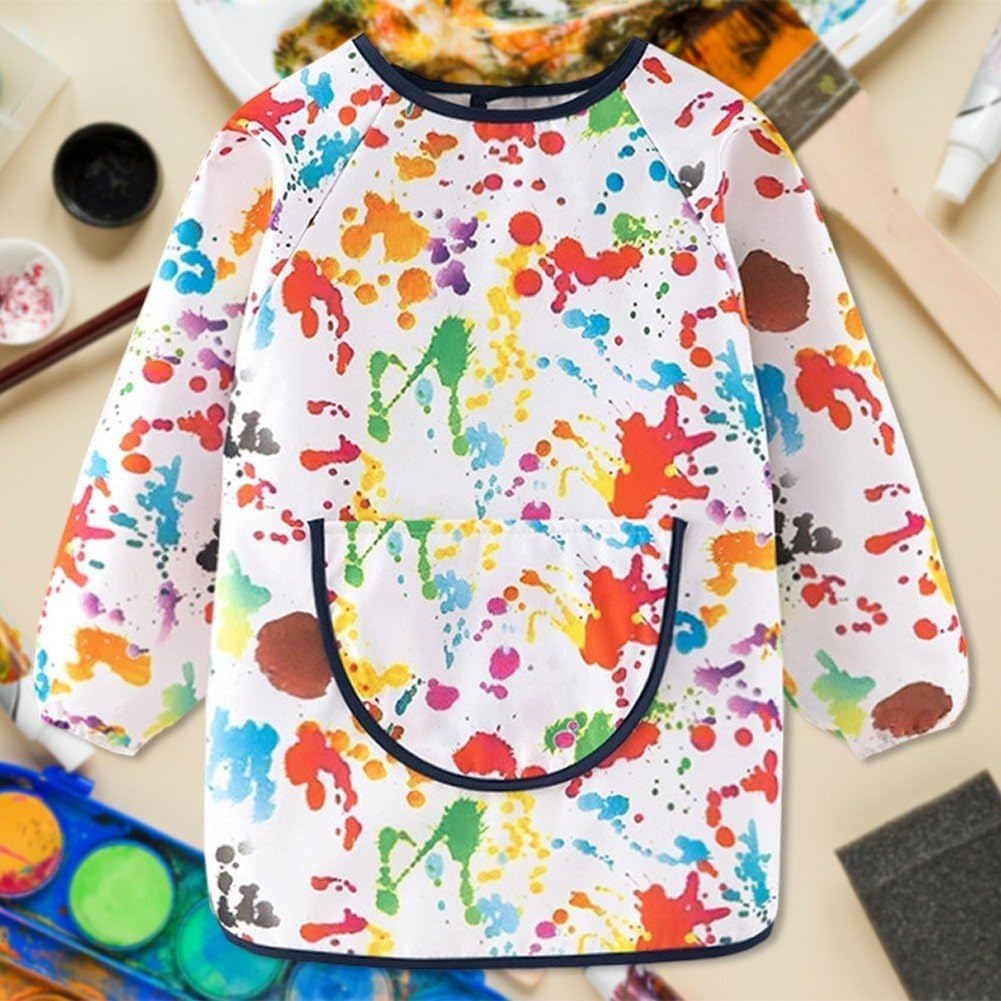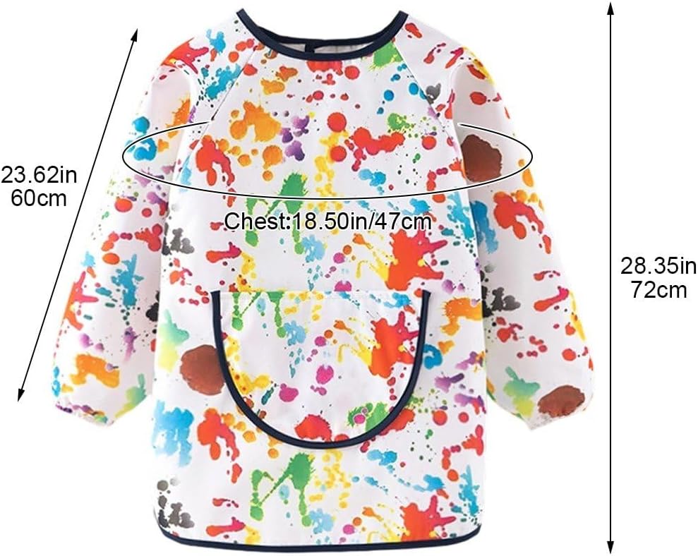 【Tasche funzionali】I nostri grembiuli sono dotati di una tasca funzionale per riporre gli strumenti pittura o lo spuntino del bambino! 【Materiale impermeabile】 Mantieni il piccolo artista pulito ed elegante con il nostro grembiule pittura per bambini! Realizzato in poliestere impermeabile, questo grembiule offre una protezione completa durante pittura, cucina o i lavori creativi. 【Design curato】Scollo rotondo, maniche lunghe e polsini elasticizzati sono progettati per offrire una copertura efficace. Sono inodori e leggeri, rendendoli sicuri e comodi per il bambino! 【Regalo】Il nostro grazioso e colorato grembiule disegno per bambini è adatto a bambini e bambine 120 a 130 cm, il che lo rende un regalo essenziale per i più piccoli. 【Versatili】I nostri grembiuli sono versatili e vivaci e possono essere utilizzati per dipingere, lavorare l'argilla, seguire corsi di cucina o anche come bavaglini durante i pasti.