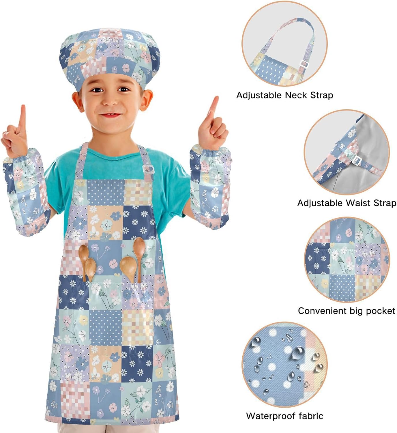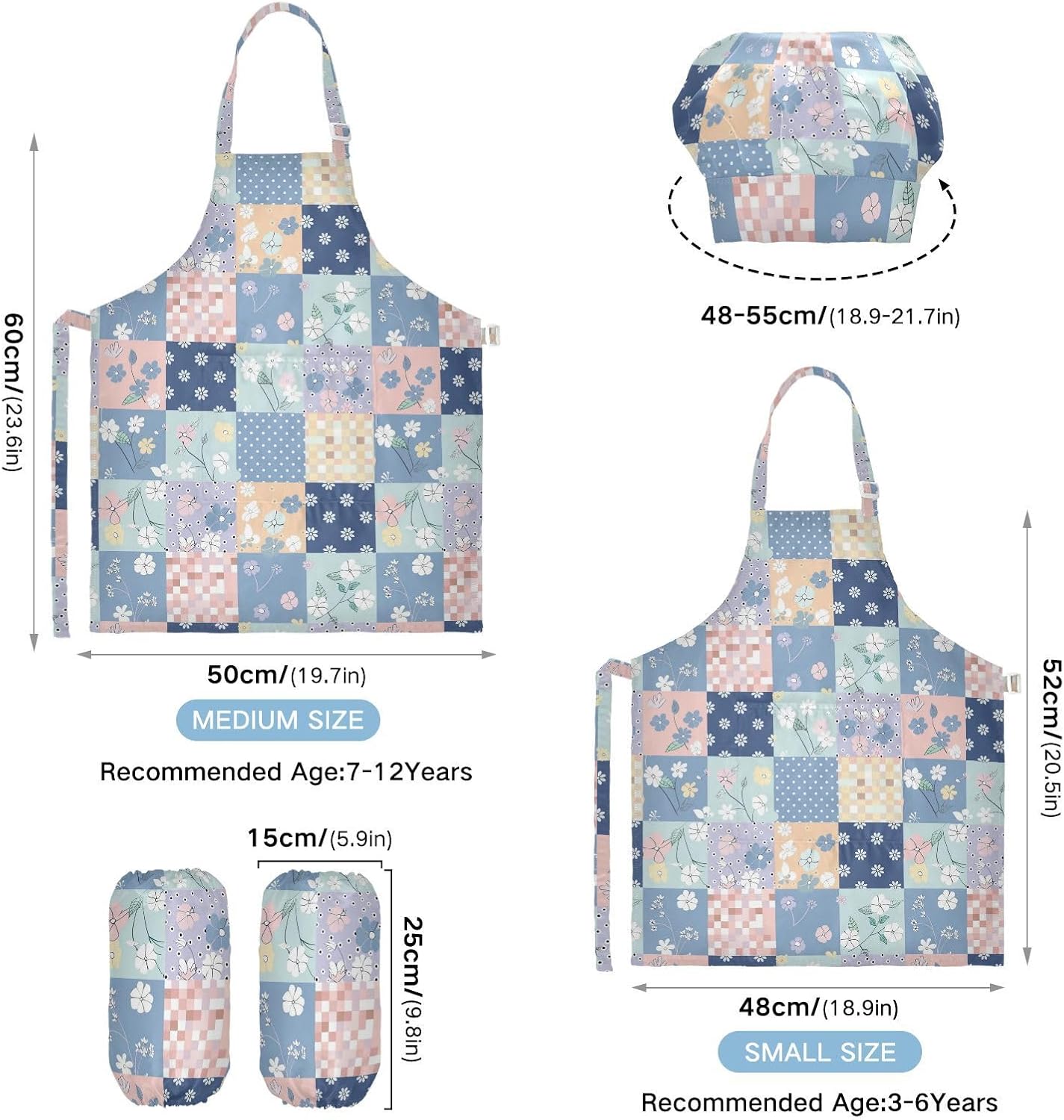 Dimensioni consigliate: S: 48 x 52 cm (età 3-6 anni). M: 50 x 59,7 cm (7-12 anni). La taglia può adattarsi alla maggior parte dei ragazzi e delle ragazze. Si prega di scegliere la taglia giusta in base alle dimensioni specifiche. Materiale di alta qualità: il grembiule per bambini è realizzato in poliestere, morbido tessuto impermeabile twill 290, per una sensazione confortevole quando si indossa. Protezione delle maniche con una grande tasca: due maniche possono proteggere i bambini da acqua, olio e pigmenti. Con grandi tasche decorative e funzionali, è comodo mettere alcuni strumenti quando si utilizza, adatto per imparare a cucinare, fare caramelle, dolci, ecc. Multiuso: il grembiule artistico per bambini non può essere indossato per pittura, cucina, giardinaggio, lavaggio dei piatti, feste, arte, artigianato e attività scolastiche, ma anche per Natale, Ringraziamento, Halloween, San Patrizio, Capodanno, festa dei bambini, festival, vacanze, cene, compleanni e riunioni di famiglia. Contenuto della confezione: un grembiule impermeabile, un cappello da chef e due maniche. L'adorabile costume da chef per bambini da 3 pezzi può incoraggiarli a sviluppare le loro abilità di cucina, pittura, cottura, giardinaggio o altre abilità.