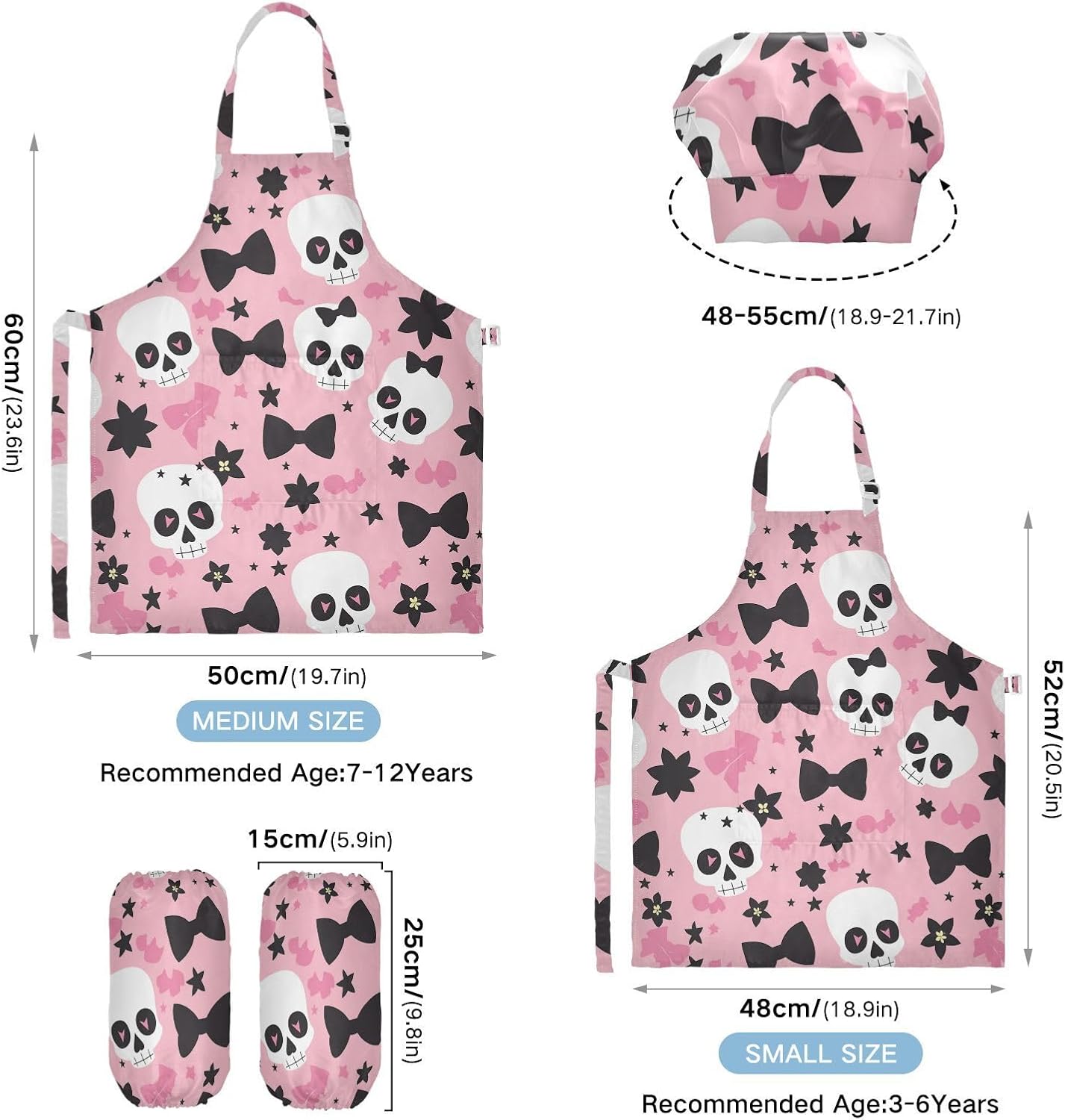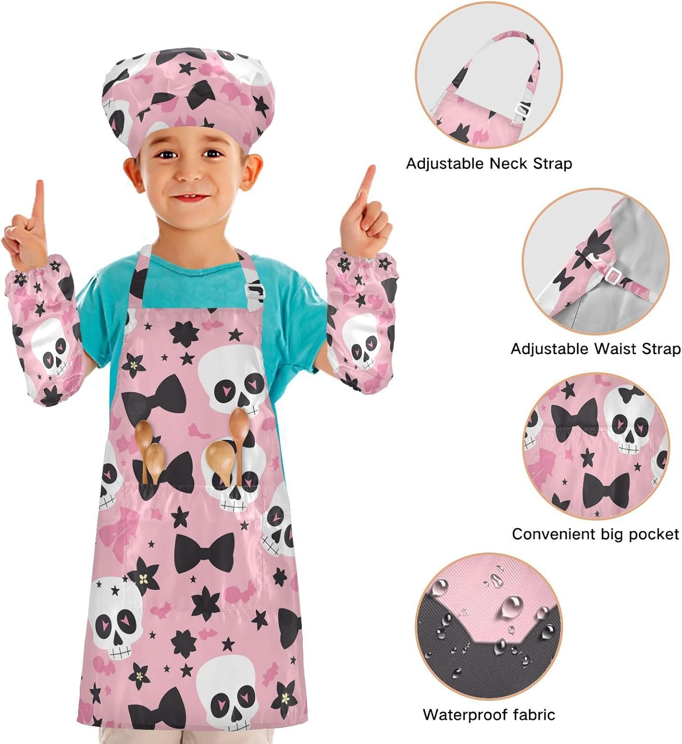 Grembiule impermeabile per bambini, con scheletro spettrale e stelle, grembiule per bambini, cappello da chef, set per cucinare e dipingere dai 3 ai 12 anni
