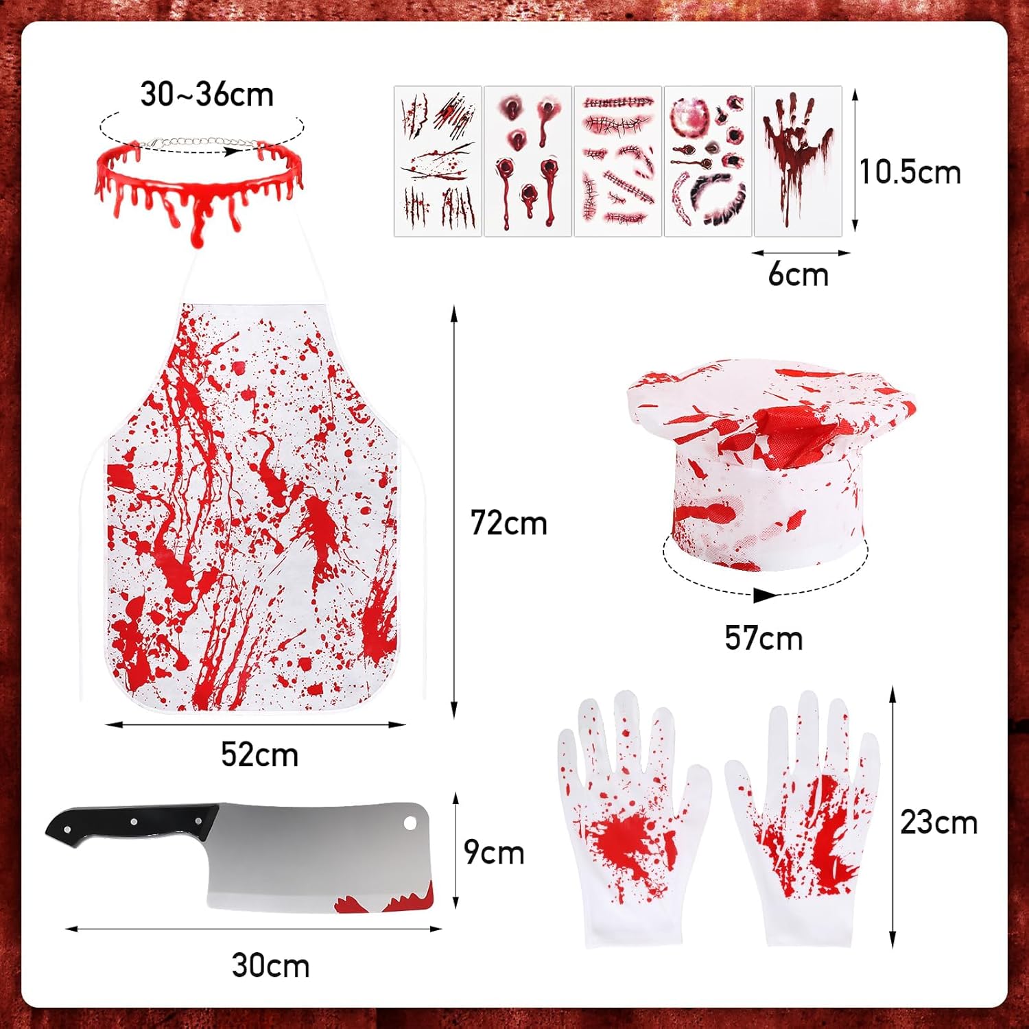 Descrizione prodotto Caratteristica: La confezione include: grembiule insanguinato+coltello artificiale+collare insanguinato+guanto+cappello+adesivo per ferita. Dimensioni: vedere la foto per le dimensioni precise. Colore: bianco+rosso. Attenzione: a causa dei diversi monitor, il colore potrebbe essere leggermente diverso, per favore capisci. A causa della misurazione manuale, la dimensione potrebbe avere un errore di 1-2 cm, per favore capisci. Avviso di sicurezza n