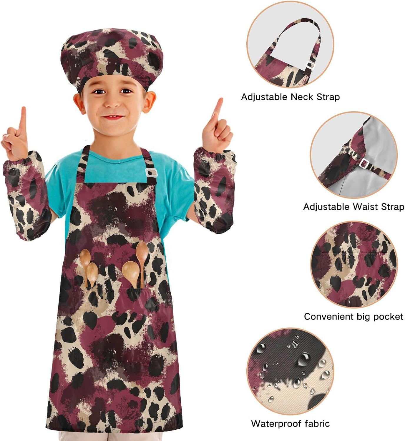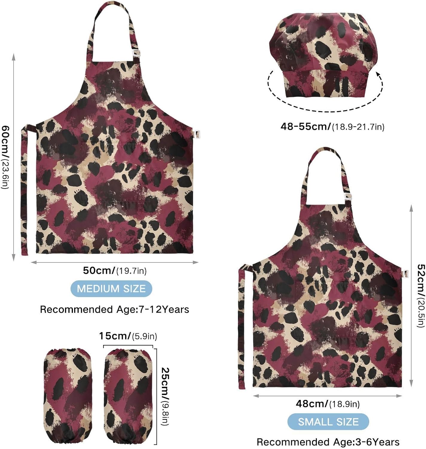 Dimensioni consigliate: S: 48 x 52 cm (età 3-6 anni). M: 50 x 59,7 cm (7-12 anni). La taglia può adattarsi alla maggior parte dei ragazzi e delle ragazze. Si prega di scegliere la taglia giusta in base alle dimensioni specifiche. Materiale di alta qualità: il grembiule da cucina per bambini è realizzato in poliestere, comodo, elegante, leggero e regolabile, impermeabile, facile da pulire. Cinghia regolabile: il set di cappello da chef per bambini con collo regolabile e cinturino in vita può fornire ai bambini una buona esperienza di utilizzo. Non devi preoccuparti se il set da cucina per bambini da 3 pezzi si adatta a loro o non più. Multiuso: il grembiule per bambini non può essere indossato per pittura, cucina, giardinaggio, lavaggio dei piatti, feste, arte, artigianato e attività scolastiche, ma anche per Natale, Ringraziamento, Halloween, San Patrizio, Capodanno, festa dei bambini, festival, vacanze, cene, compleanni e riunioni di famiglia. Istruzioni di lavaggio: lavabile in lavatrice e a mano. Non candeggiare, lavare a secco e asciugare in asciugatrice.