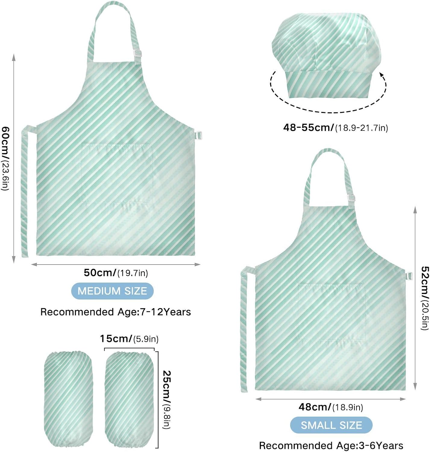 Grembiule multiuso per bambini, motivo verde e bianco, con tasche, per cucinare e cuocere 3-12 anni