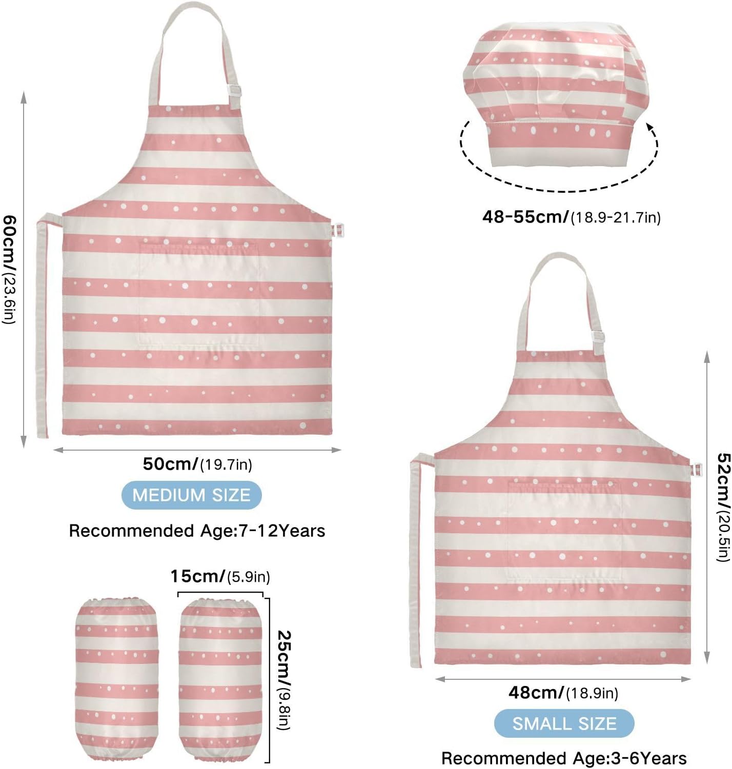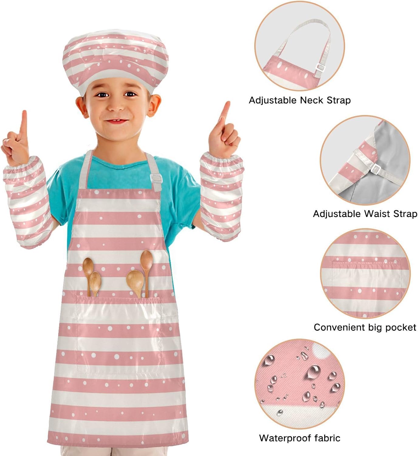 Grembiule per bambini a righe e pois beige per bambini con tasche per cucinare e dipingere 3-12 anni