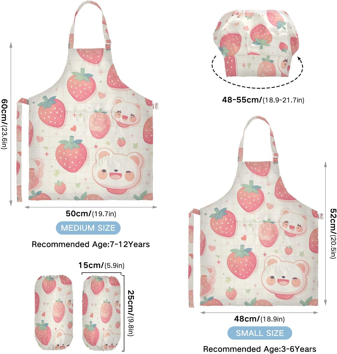 Taglia disponibile: S: 48 x 52 cm, per bambini dai 3 ai 6 anni. M: 50 x 59,7 cm, per bambini dai 7 ai 12 anni. Le taglie di cappelli e maniche condividono le stesse dimensioni. Cappello: 48-55 cm. Maniche: 15 x 24,9 cm. Materiale di alta qualità: il grembiule per bambini è realizzato in poliestere, comodo, elegante, leggero e regolabile, impermeabile, facile da pulire. Cinghia regolabile: il collo lungo e le cinghie in vita sono regolabili. È possibile regolare la cinghia in base alla lunghezza che i bambini si sentono a proprio agio per attività o vestirsi Inoltre, la cinghia regolabile può fornire abbastanza spazio per i bambini da indossare o togliere. Ampia applicazione: il grembiule da cucina per bambini è adatto per l'insegnamento della pittura e l'insegnamento della cucina, può essere applicato anche per corsi d'arte, costumi di Halloween, oggetti di scena teatrali, feste di compleanno e le belle attività della decorazione per feste a tema. Facile da pulire: il nostro prodotto è impermeabile e a prova di fuoriuscite. Basta strofinare, lavare in lavatrice e lavare a mano.