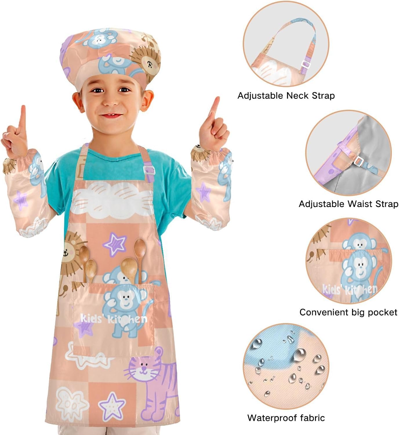 Suggerimento: M: 50 x 59,7 cm (età 7-12 anni). La taglia può adattarsi alla maggior parte dei ragazzi e delle ragazze. Si prega di scegliere la taglia giusta in base alle dimensioni specifiche. Materiale di alta qualità: il costume da chef per bambini è realizzato in poliestere di alta qualità, comodo, elegante, leggero e regolabile, impermeabile, facile da pulire. Protezione delle maniche con una grande tasca: due maniche possono proteggere i bambini da acqua, olio e pigmenti. Con grandi tasche decorative e funzionali, è comodo mettere alcuni strumenti quando si utilizza, adatto per imparare a cucinare, fare caramelle, dolci, ecc. Multiuso: il set di cappelli da chef per bambini non può essere indossato per pittura, cucina, giardinaggio, lavaggio dei piatti, feste, arte, artigianato e attività scolastiche, ma anche per Natale, Ringraziamento, Halloween, San Patrizio, Capodanno, festa dei bambini, festival, vacanze, cene, compleanni e riunioni di famiglia. Facile da pulire: il nostro prodotto è impermeabile e a prova di fuoriuscite. Basta strofinare, lavare in lavatrice e lavare a mano.