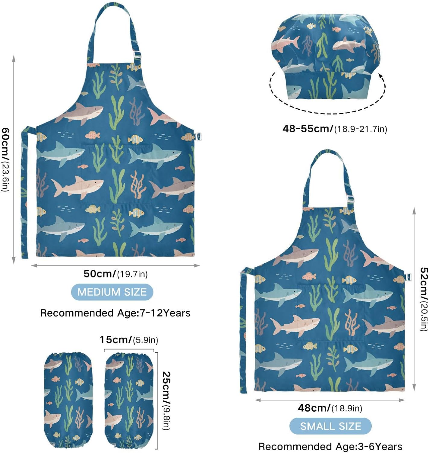 Dimensioni e articolo include: S: 18,9 x 20,5 L per bambini dai 3 ai 6 anni. M: 19,7 W x 23,5 L per età 7-12 anni. Il set di grembiule per bambini include 1 grembiule leggero, 1 cappello da chef e 2 maniche. I grembiuli per bambini possono dare ai bambini una buona esperienza di utilizzo per cucinare o dipingere come fornelli o pittori professionisti. Materiale di alta qualità: il set da cucina per bambini da 3 pezzi è realizzato in poliestere, morbido tessuto impermeabile twill 290, per una sensazione confortevole quando si indossa. Cinghia regolabile: il set di cappello da chef per bambini con collo regolabile e cinturino in vita può fornire ai bambini una buona esperienza di utilizzo. Non devi preoccuparti se il set da chef per bambini si adatta a loro o meno. Scenario applicabile: ideale per asilo, asilo, cucina, sala pittura, giardino, Halloween, Natale, abbigliamento del Ringraziamento, artigianato e attività di pittura artistica, festa di compleanno per incoraggiare i bambini a sviluppare la loro cucina, pittura, cottura, giardinaggio o altre abilità. Istruzioni di lavaggio: lavabile in lavatrice e a mano. Non candeggiare, lavare a secco e asciugare in asciugatrice.