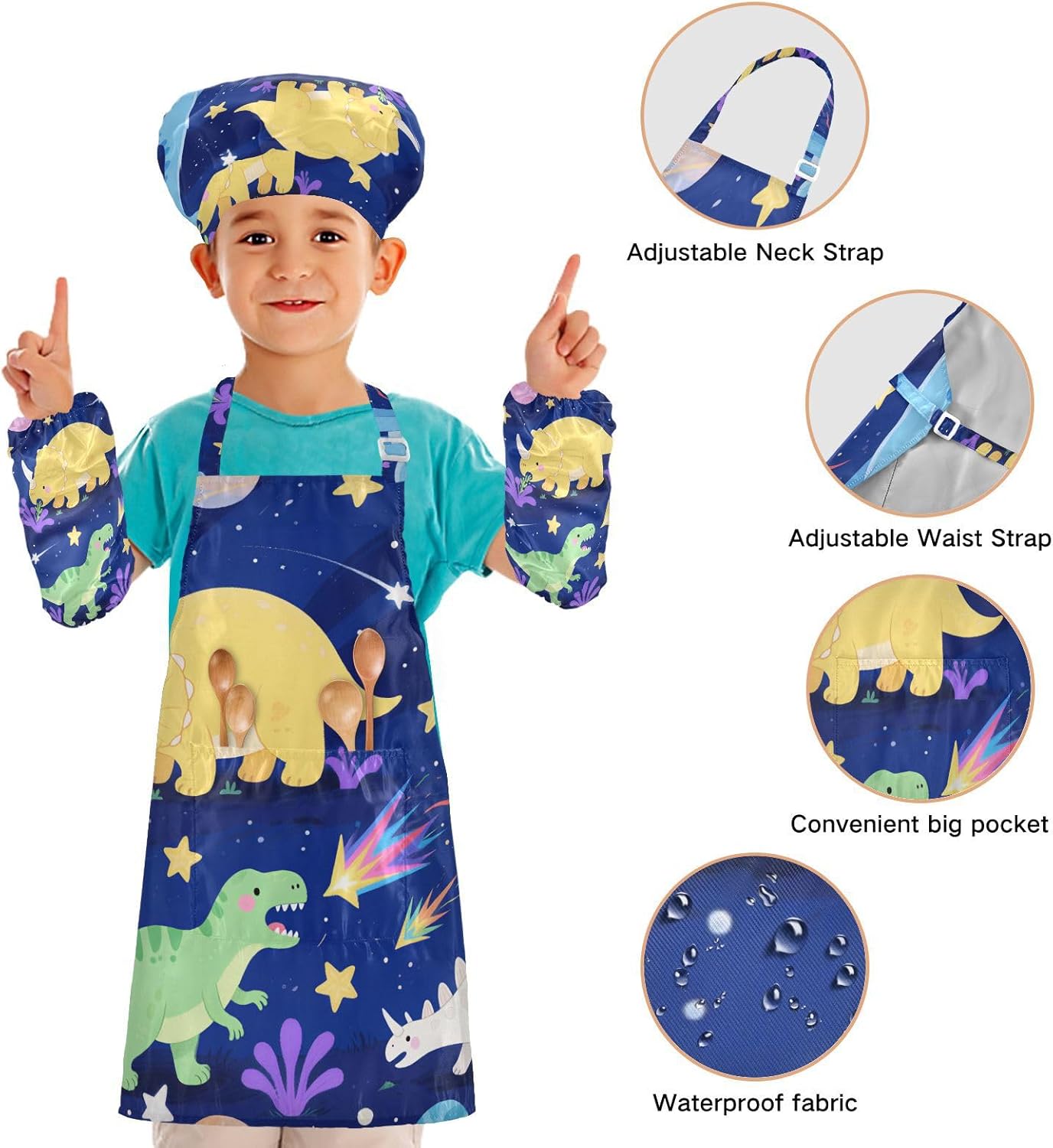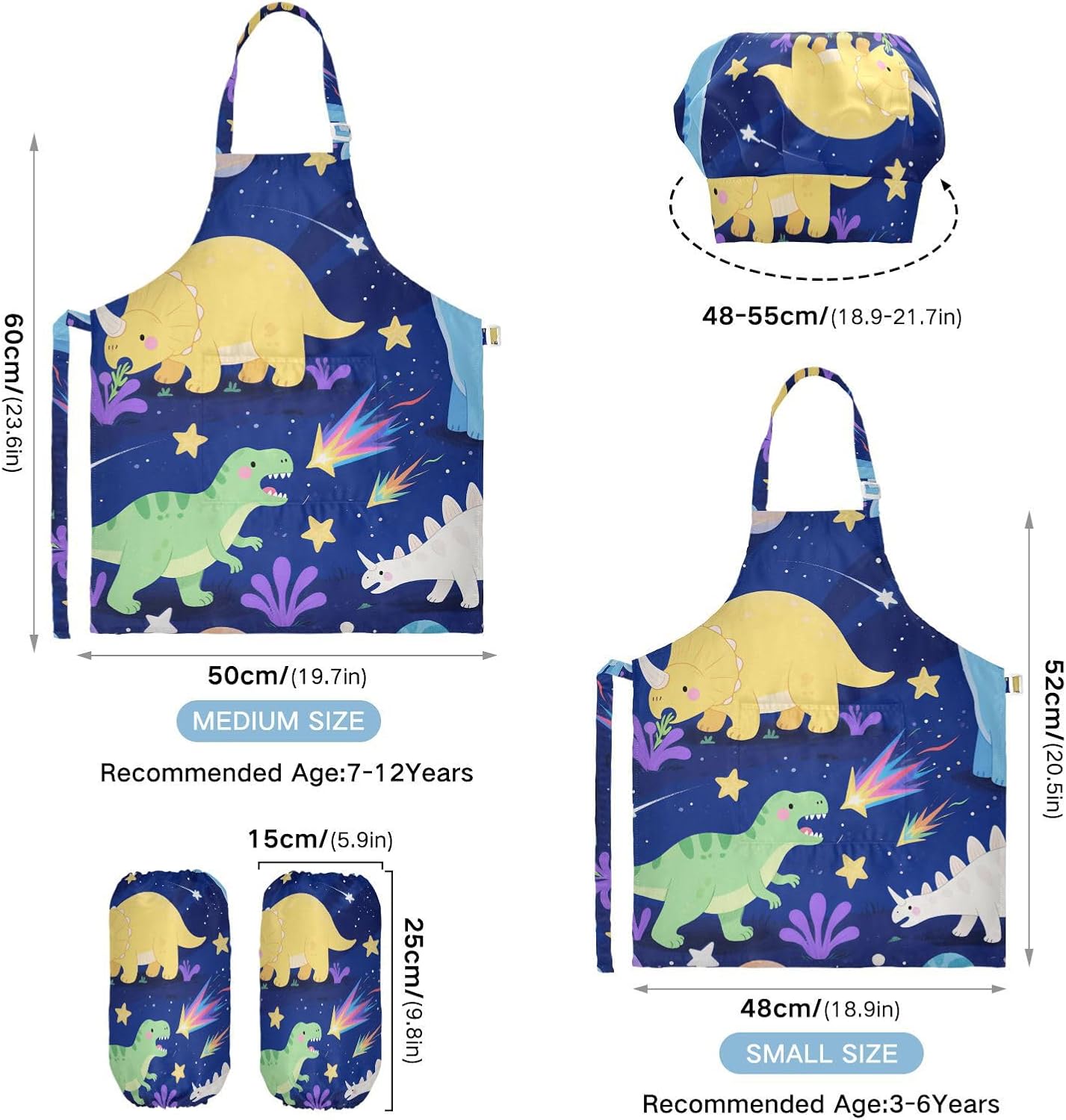 Dimensioni consigliate: S: 48 x 52 cm (età 3-6 anni). M: 50 x 59,7 cm (7-12 anni). La taglia può adattarsi alla maggior parte dei ragazzi e delle ragazze. Si prega di scegliere la taglia giusta in base alle dimensioni specifiche. Materiale di alta qualità: il grembiule per bambini è realizzato in poliestere, morbido tessuto impermeabile twill 290, per una sensazione confortevole quando si indossa. Cinghia regolabile: il set da cucina per bambini da 3 pezzi con collo regolabile e cinturino in vita può fornire ai bambini una buona esperienza di utilizzo. Non devi preoccuparti se il grembiule per bambini si adatta a loro o meno. Multiuso: il set di grembiuli per bambini non può essere indossato per pittura, cucina, giardinaggio, lavaggio dei piatti, feste, arte, artigianato e attività scolastiche, ma anche per Natale, Ringraziamento, Halloween, San Patrizio, Capodanno, festa dei bambini, festival, vacanze, cene, compleanni e riunioni di famiglia. Facile da pulire: il nostro prodotto è impermeabile e a prova di fuoriuscite. Basta strofinare, lavare in lavatrice e lavare a mano.