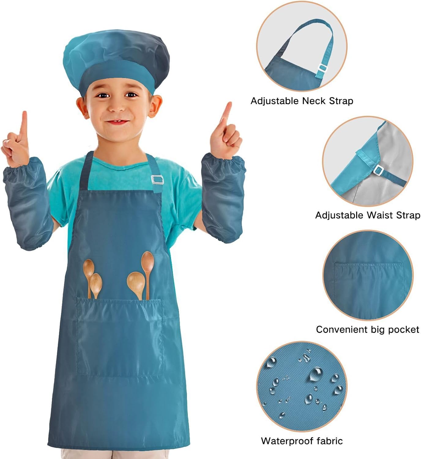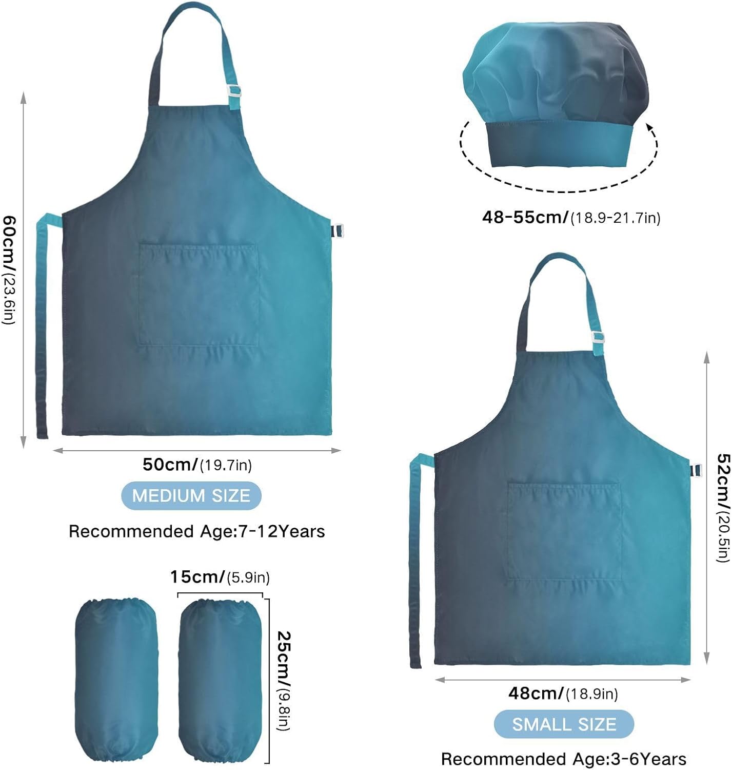 Taglia disponibile: S: 48 x 52 cm, per bambini dai 3 ai 6 anni. M: 50 x 59,7 cm, per bambini dai 7 ai 12 anni. Le taglie di cappelli e maniche condividono le stesse dimensioni. Cappello: 48-55 cm. Maniche: 15 x 24,9 cm. Materiale di alta qualità: i grembiuli per bambini sono realizzati in poliestere, comodi, eleganti, leggeri e regolabili, impermeabili, facili da pulire. Cinghia regolabile: il collo lungo e le cinghie in vita sono regolabili. È possibile regolare la cinghia in base alla lunghezza che i bambini si sentono a proprio agio per attività o vestirsi Inoltre, la cinghia regolabile può fornire abbastanza spazio per i bambini da indossare o togliere. Applicazioni versatili: ideale per i bambini per proteggere i vestiti durante la cottura, il giardinaggio, la cottura, il gioco, la produzione di caramelle, la cottura di torte, tele, arti e mestieri, lezioni in classe, faccende domestiche. Può anche essere una grande decorazione per costumi di Halloween, oggetti di scena teatrali, feste di compleanno, eventi carini, feste a tema, riunioni di famiglia e molto altro ancora. Contenuto della confezione: un grembiule impermeabile, un cappello da chef e due maniche. Gli adorabili grembiuli per bambini possono incoraggiarli a sviluppare le loro abilità di cucina, pittura, cottura, giardinaggio o altre abilità.