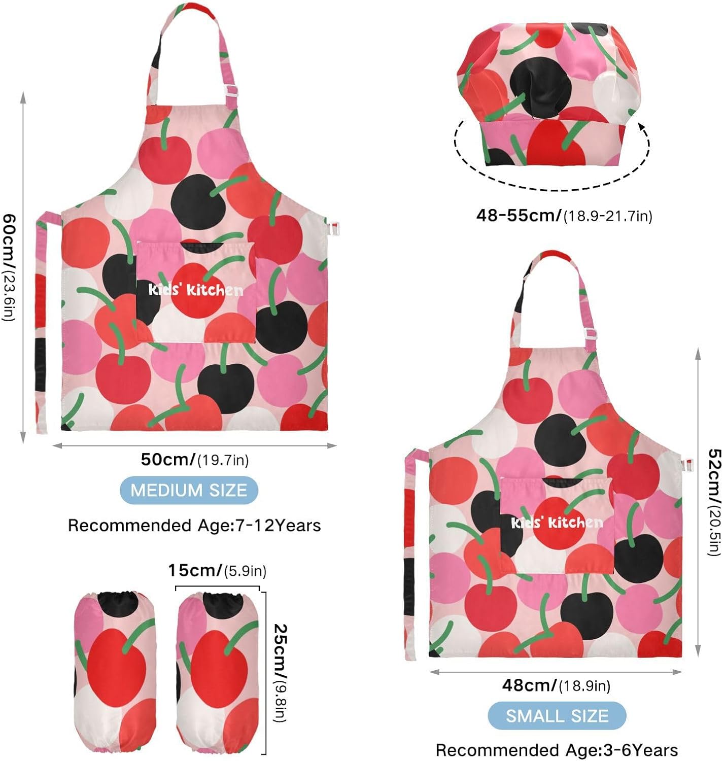 Taglia disponibile: S: 48 x 52 cm, per bambini dai 3 ai 6 anni. M: 50 x 59,7 cm, per bambini dai 7 ai 12 anni. Le taglie di cappelli e maniche condividono le stesse dimensioni. Cappello: 48-55 cm. Maniche: 15 x 24,9 cm. Tessuto comodo: il {parola chiave} è realizzato in tessuto di poliestere di alta qualità, morbido, ecologico, impermeabile, a prova di fuoriuscite e, processo di stampa squisito brillante. Impermeabile Caratteristica: Realizzato in poliestere, il grembiule da cucina per bambini è impermeabile. I bambini possono sentirsi liberi di imparare a cucinare e dipingere come preferiscono e possono mantenere i loro vestiti puliti allo stesso tempo. Ampia applicazione: i grembiuli per bambini sono adatti per l'insegnamento della pittura e l'insegnamento della cucina, possono essere applicati anche per corsi d'arte, costumi di Halloween, oggetti di scena teatrali, feste di compleanno e le belle attività della decorazione per feste a tema. Facile da pulire: il nostro prodotto è impermeabile e a prova di fuoriuscite. Basta strofinare, lavare in lavatrice e lavare a mano.